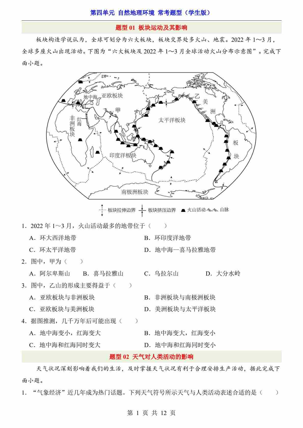 第4单元 自然地理环境(常考题型)