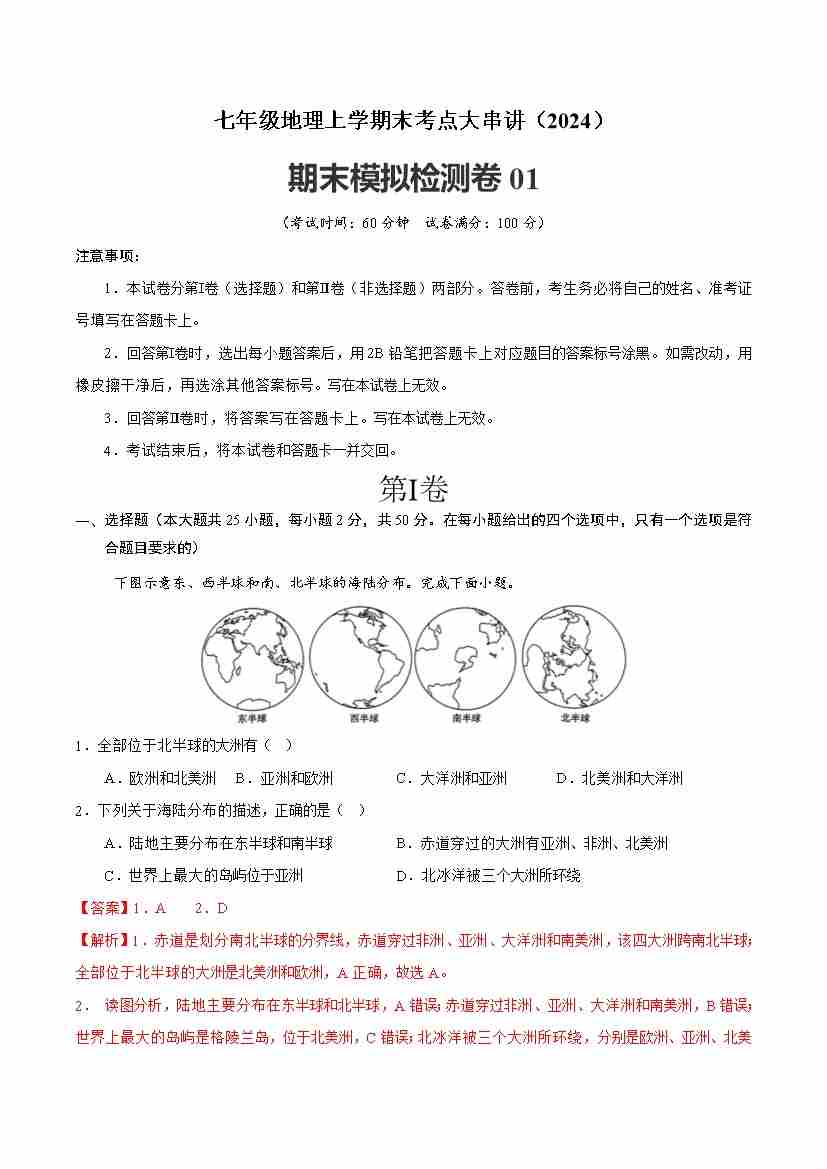 期末模拟检测卷01解析版