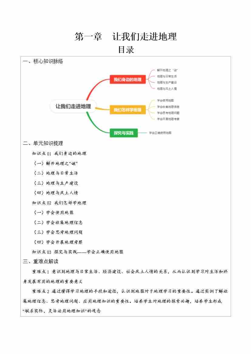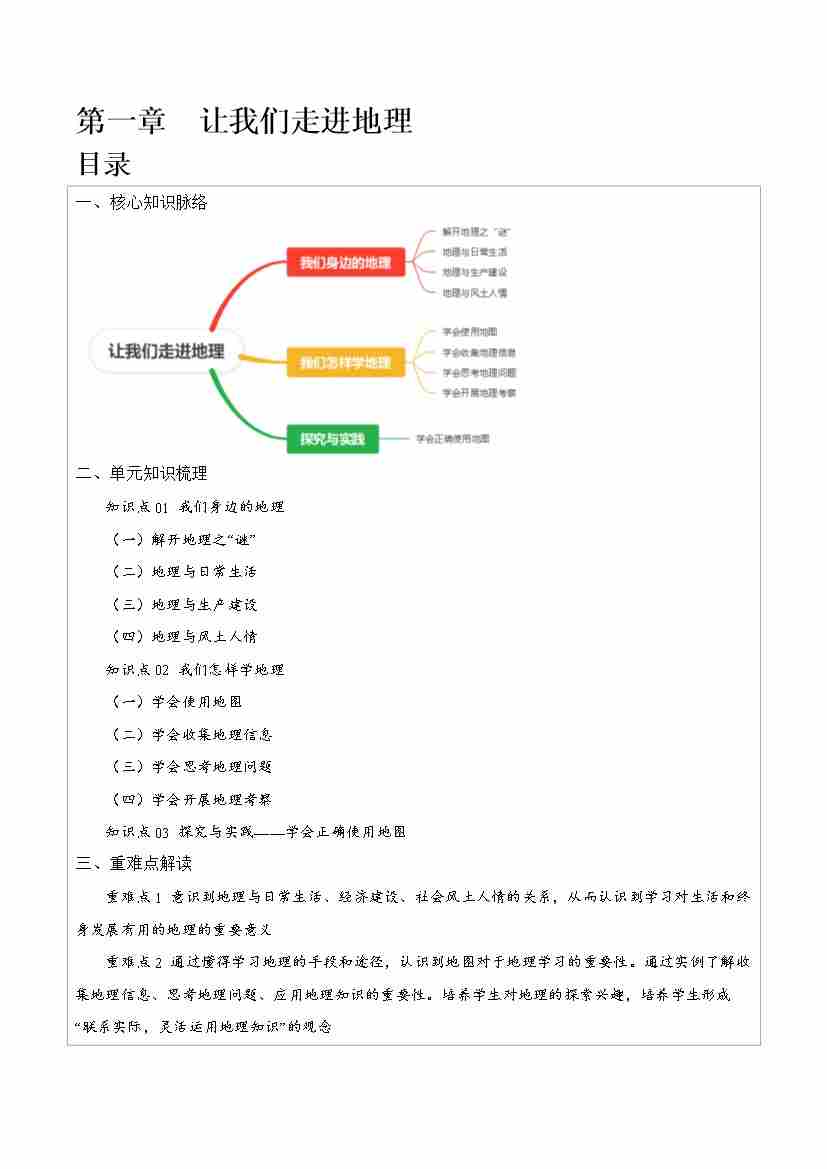 第一章 让我们走进地理【速记清单】-七年级地理上册(湘教版)(答案版)
