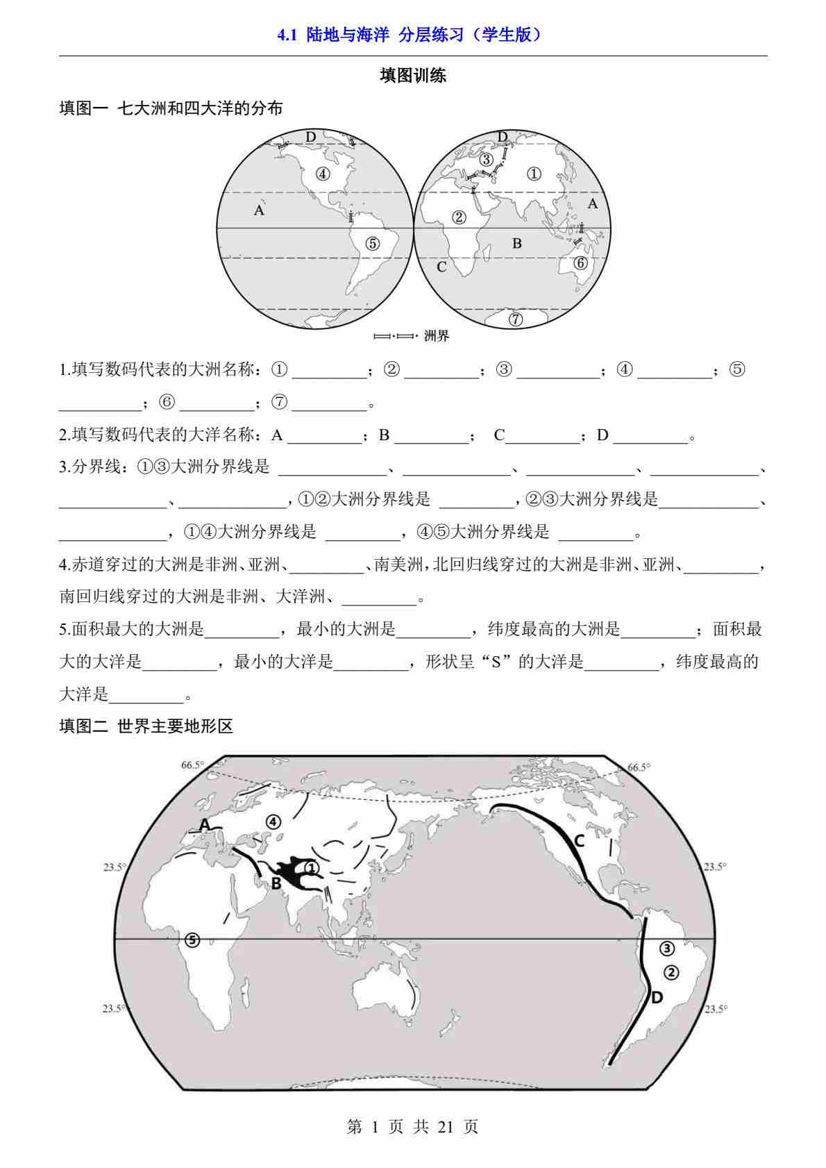 4.1 陆地与海洋(分层练习)