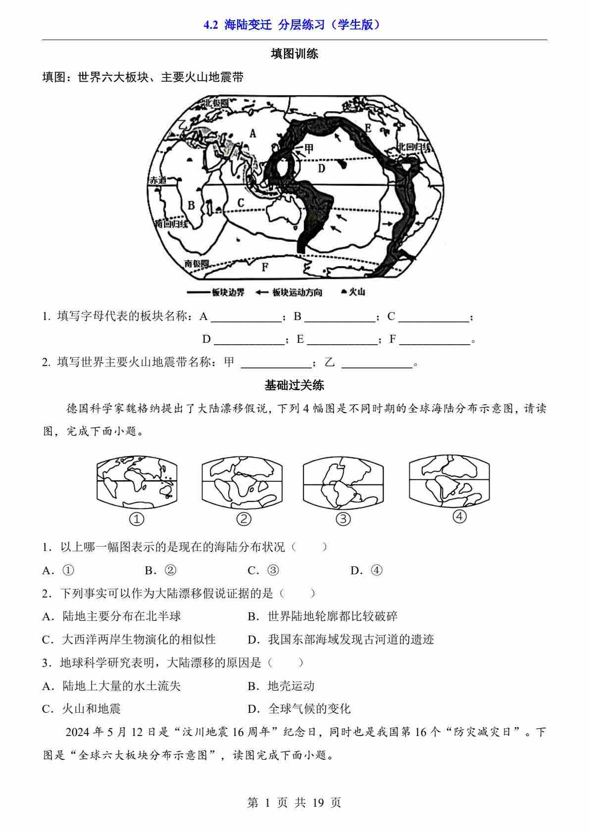 4.2 海陆变迁(分层练习)