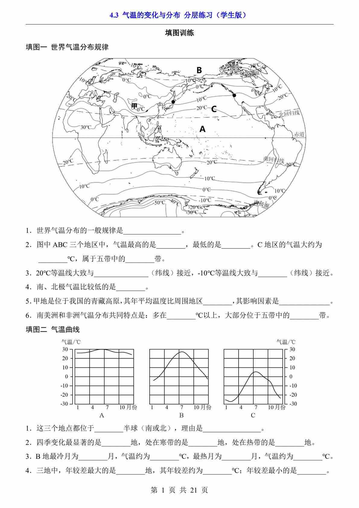 4.3 气温的变化与分布(分层练习)