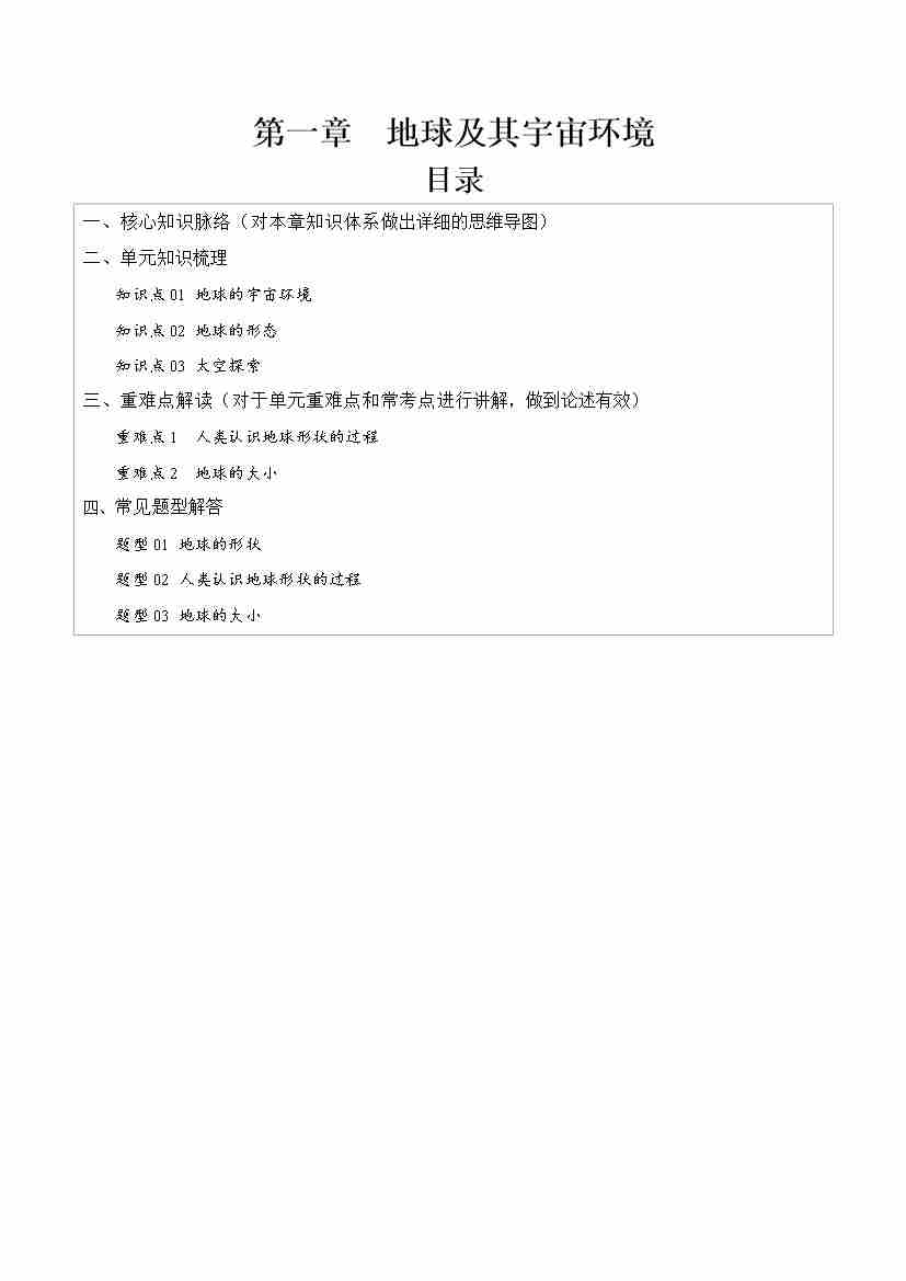 第一章 地球及其宇宙环境【速记清单】(填空版)-七年级地理上册(商务星球版)