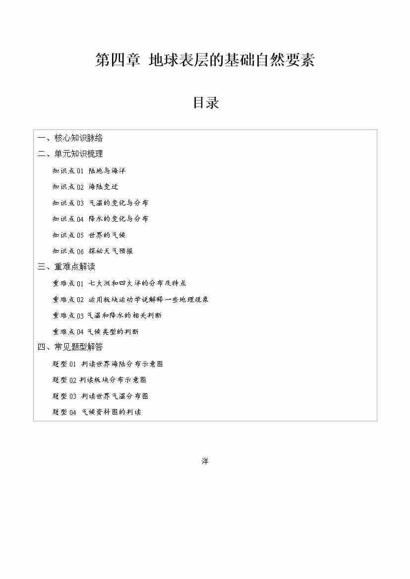 第四章 地球表层的基础自然要素【速记清单】----(填空版)