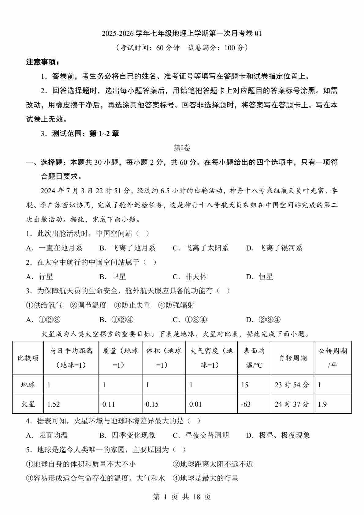 24-25学年上学期七年级地理第一次月考(1)