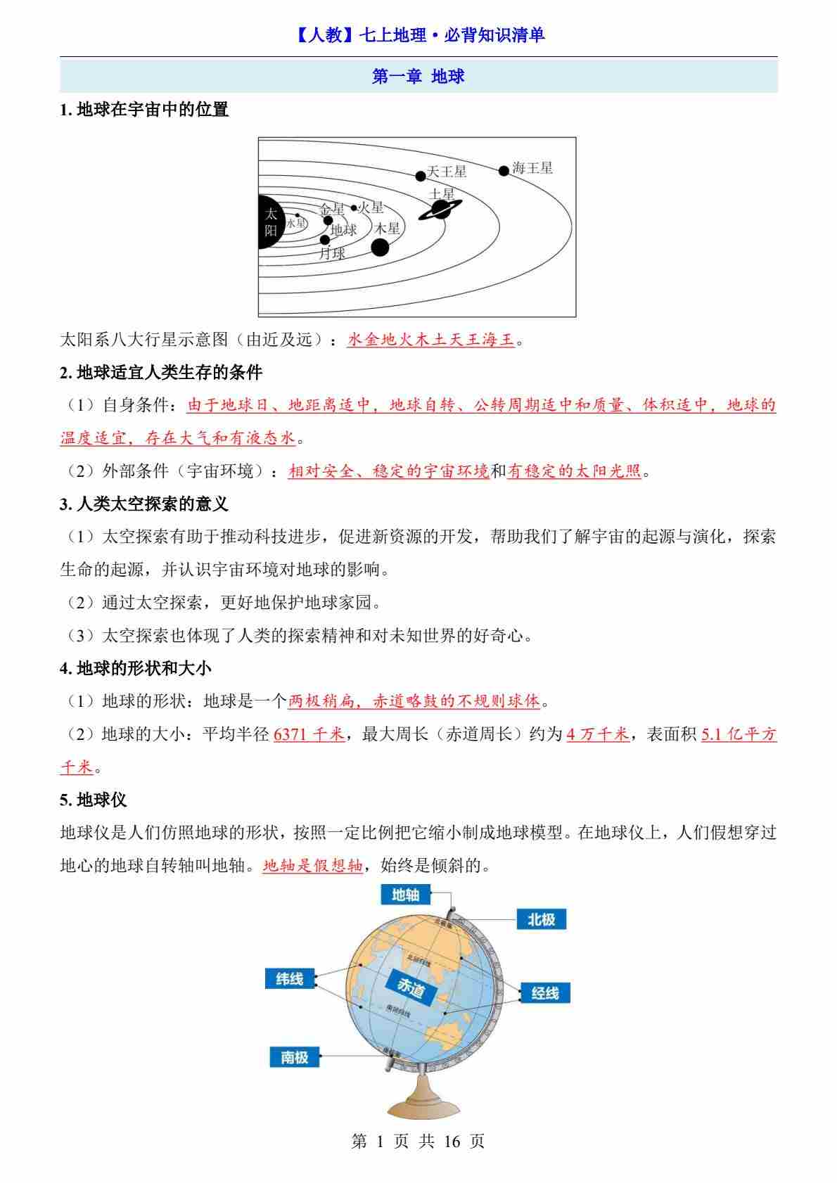第1章 地球(知识清单-背诵版)