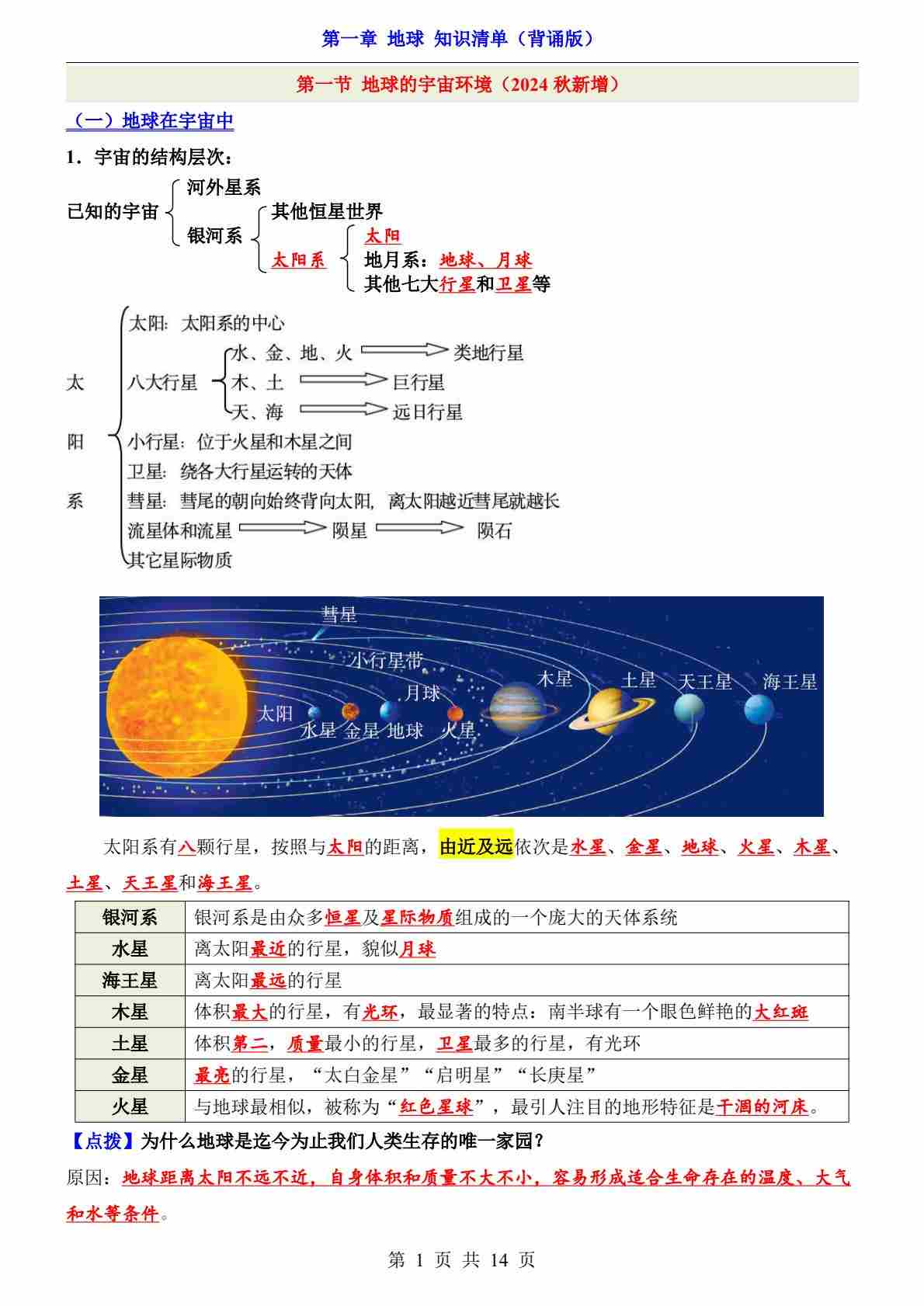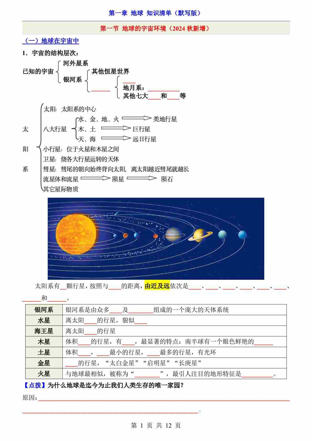 第1章 地球(知识清单-默写版)