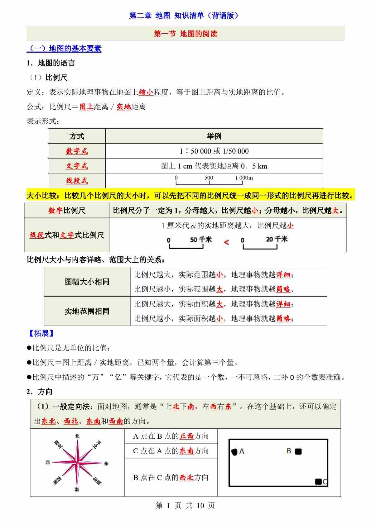 第2章 地图(知识清单-背诵版)