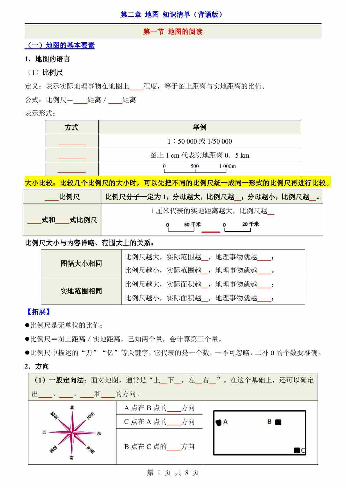 第2章 地图(知识清单-默写版)