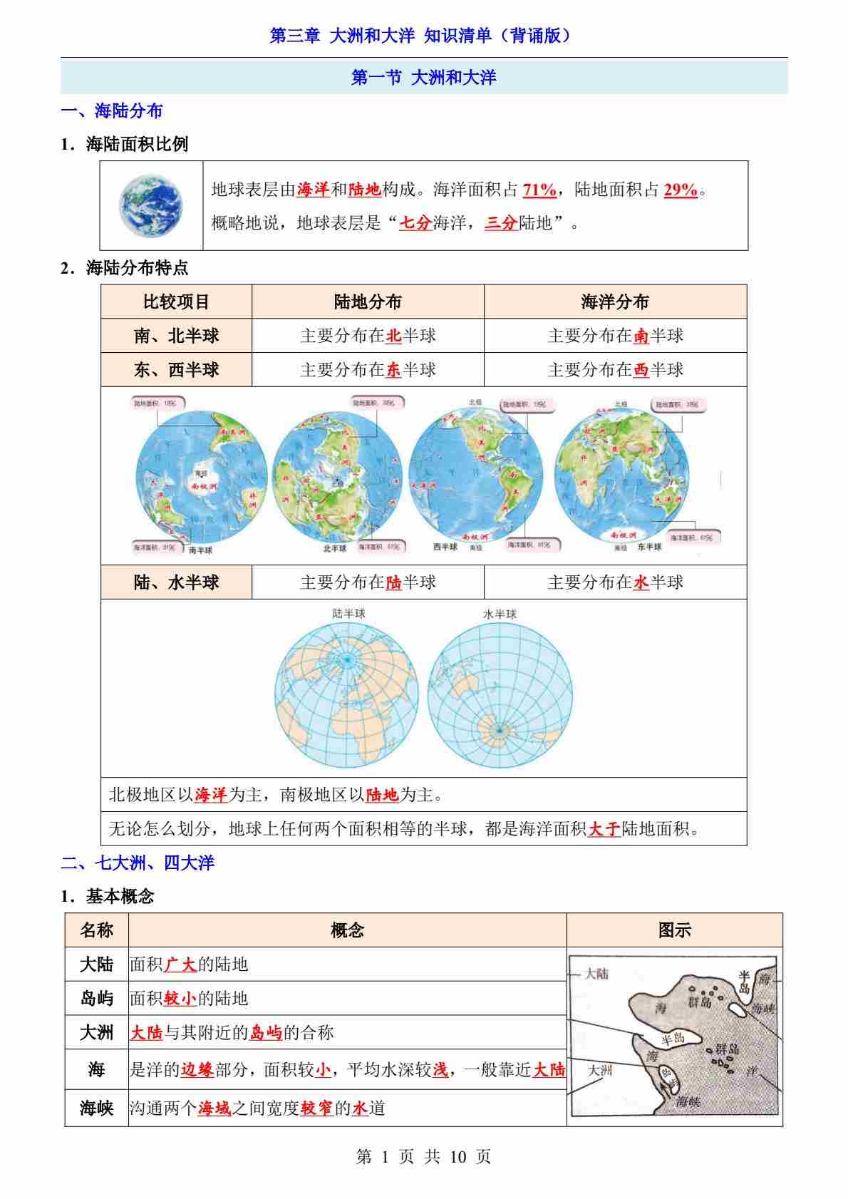 第3章 陆地和海洋(知识清单-背诵版)