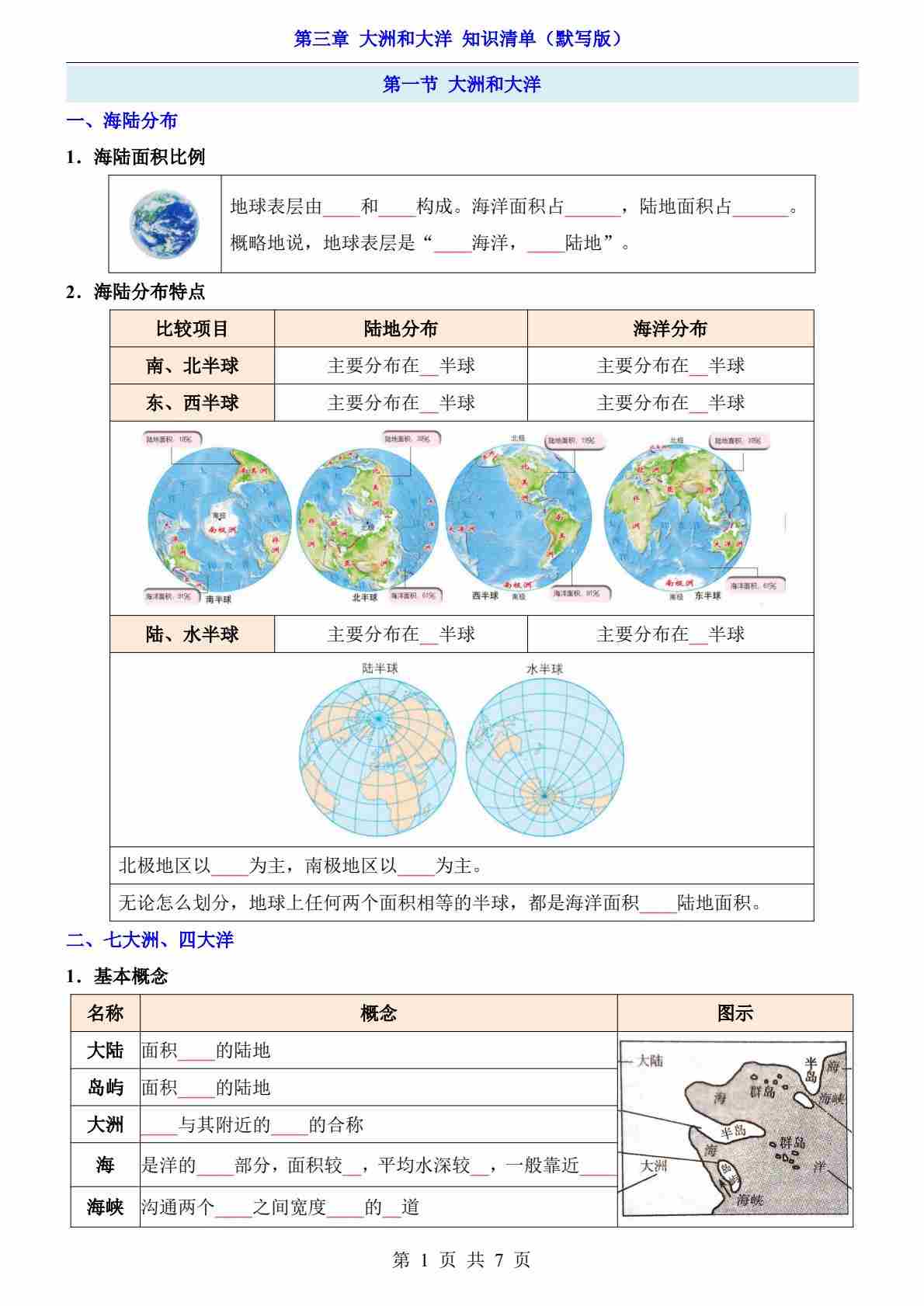 第3章 陆地和海洋(知识清单-默写版)