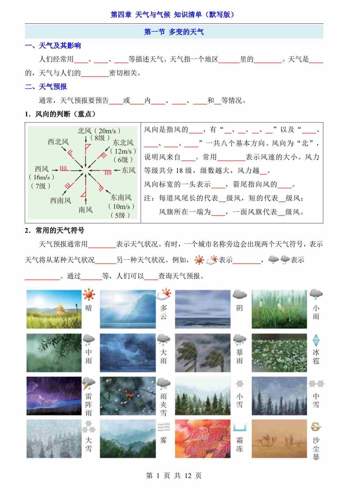 第4章 天气与气候(知识清单-默写版)