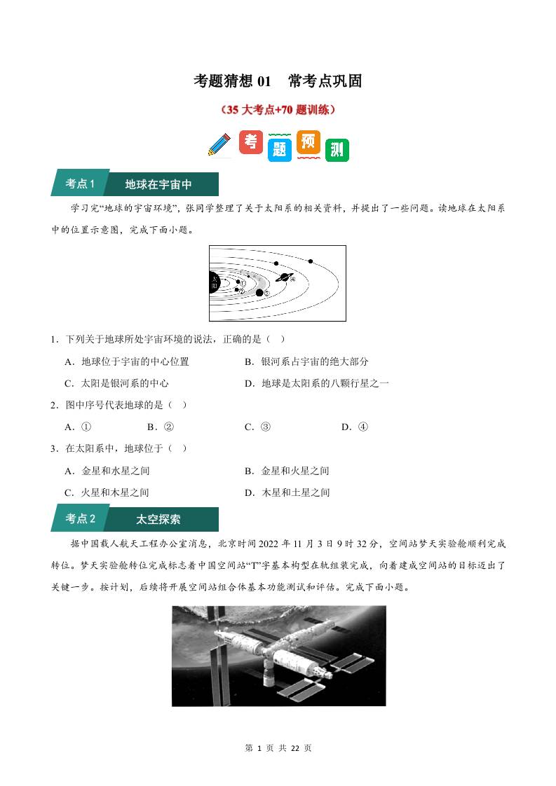 考题猜想01 常考点巩固35大考点70题训练(原卷版)