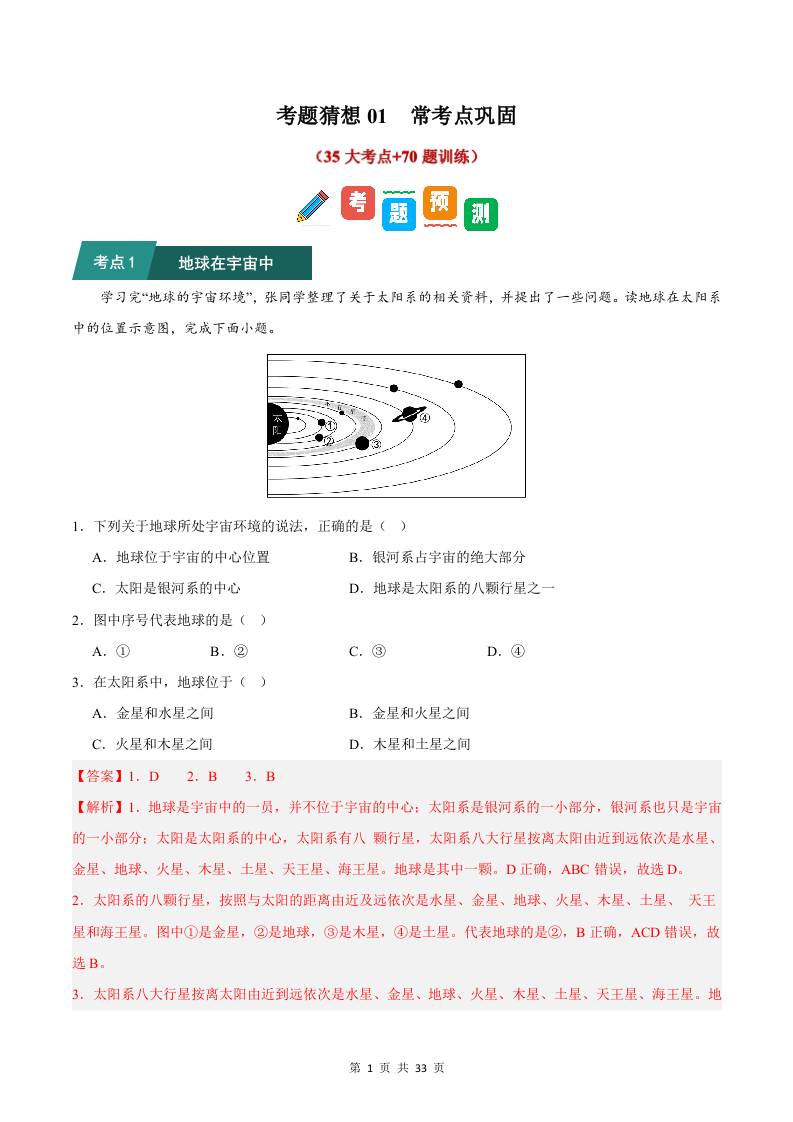 考题猜想01 常考点巩固35大考点70题训练(解析版)