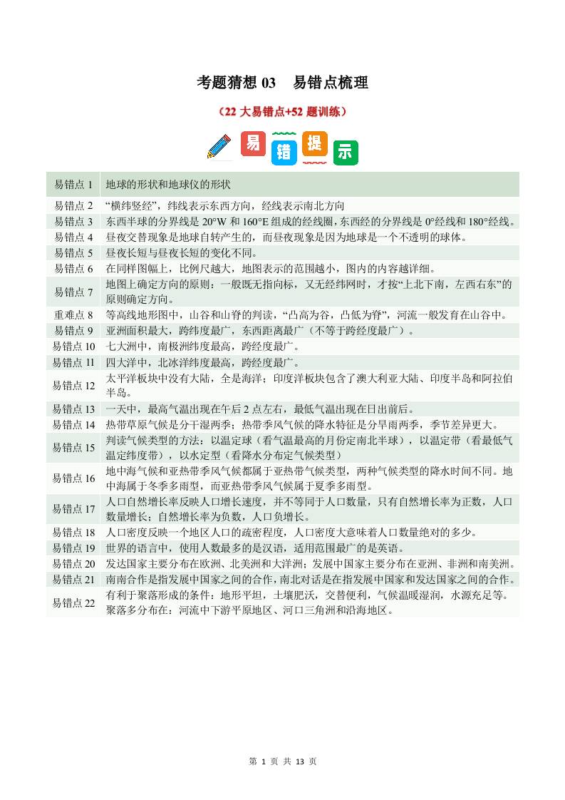 考题猜想03 易错点梳理22大易错点52题训练(原卷版)