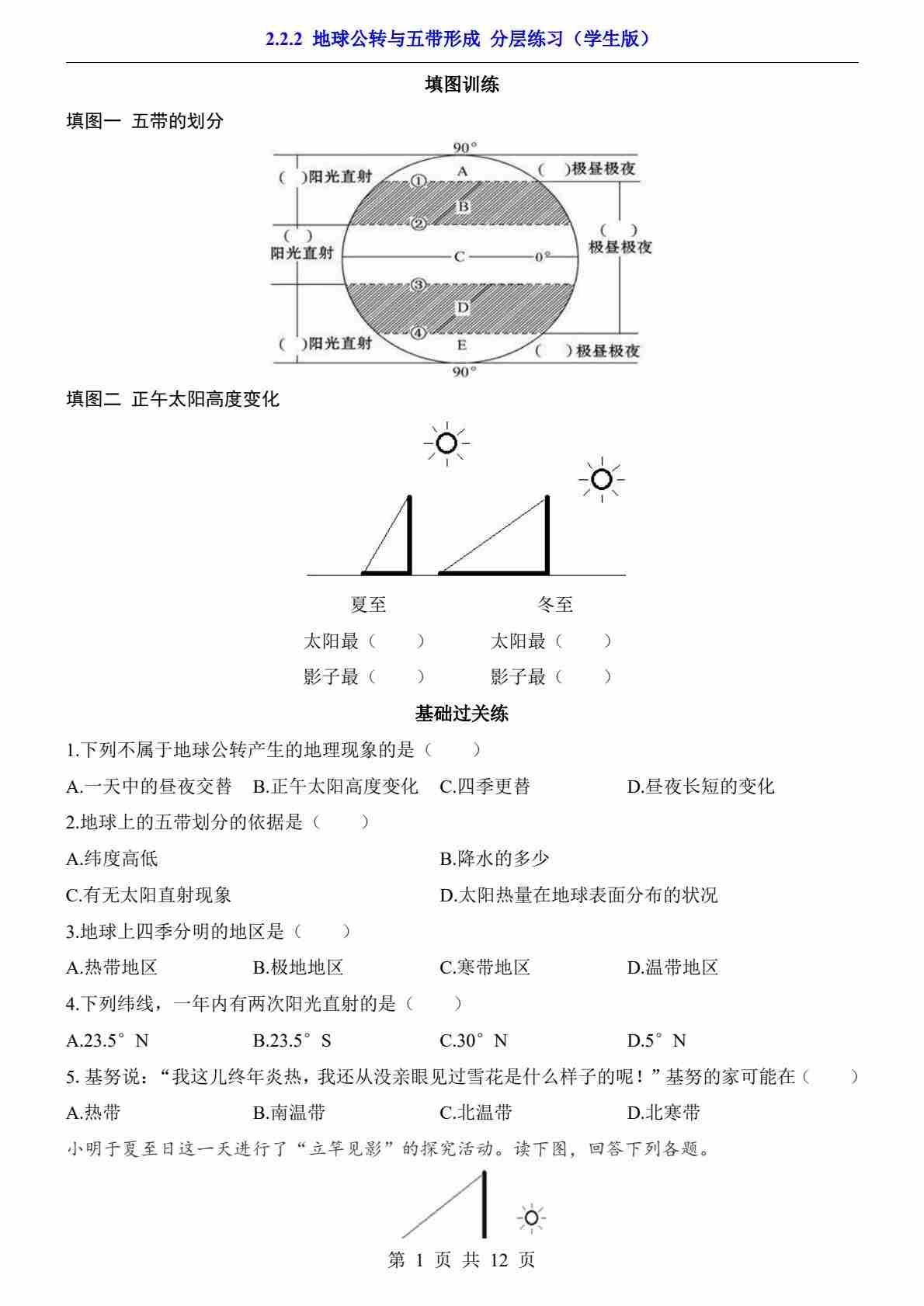 2.2.2 地球公转与五带形成(分层练习)