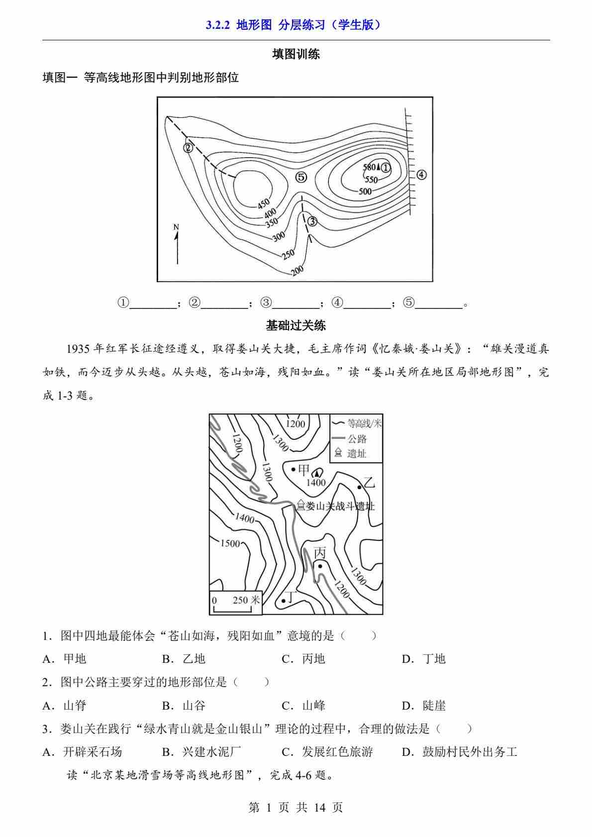 3.2.2 地形图 分层练习