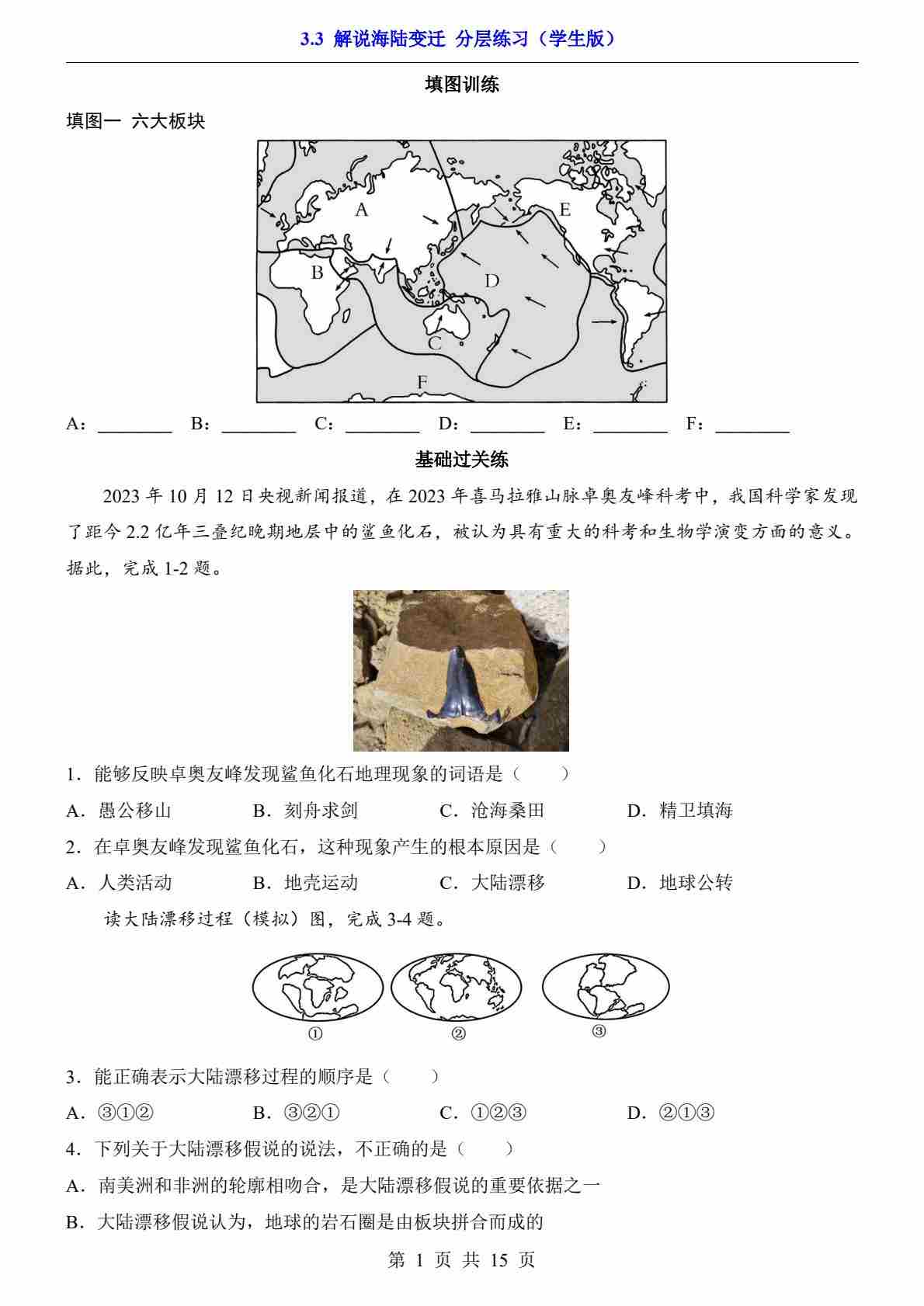 3.3 解说海陆变迁 分层练习
