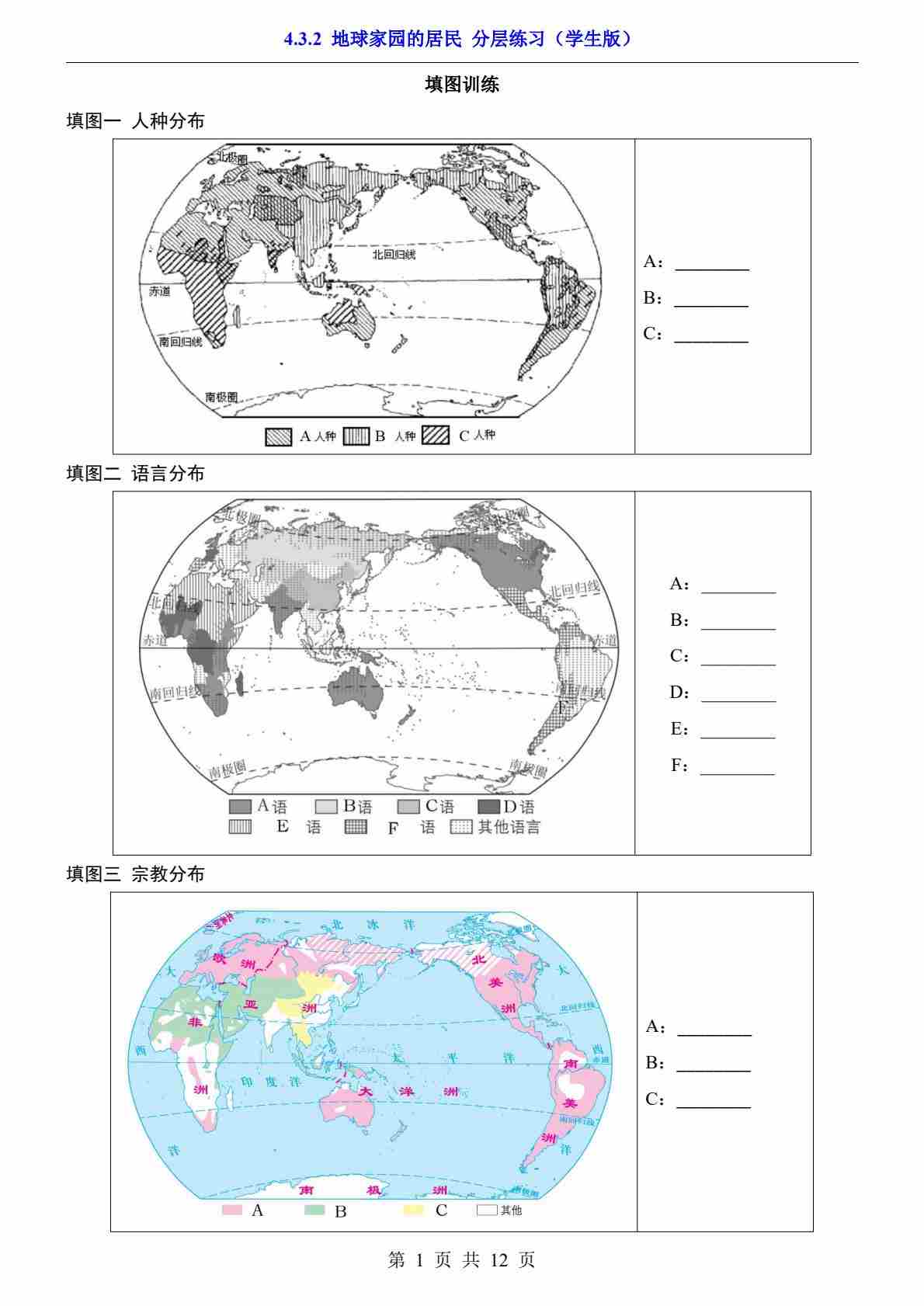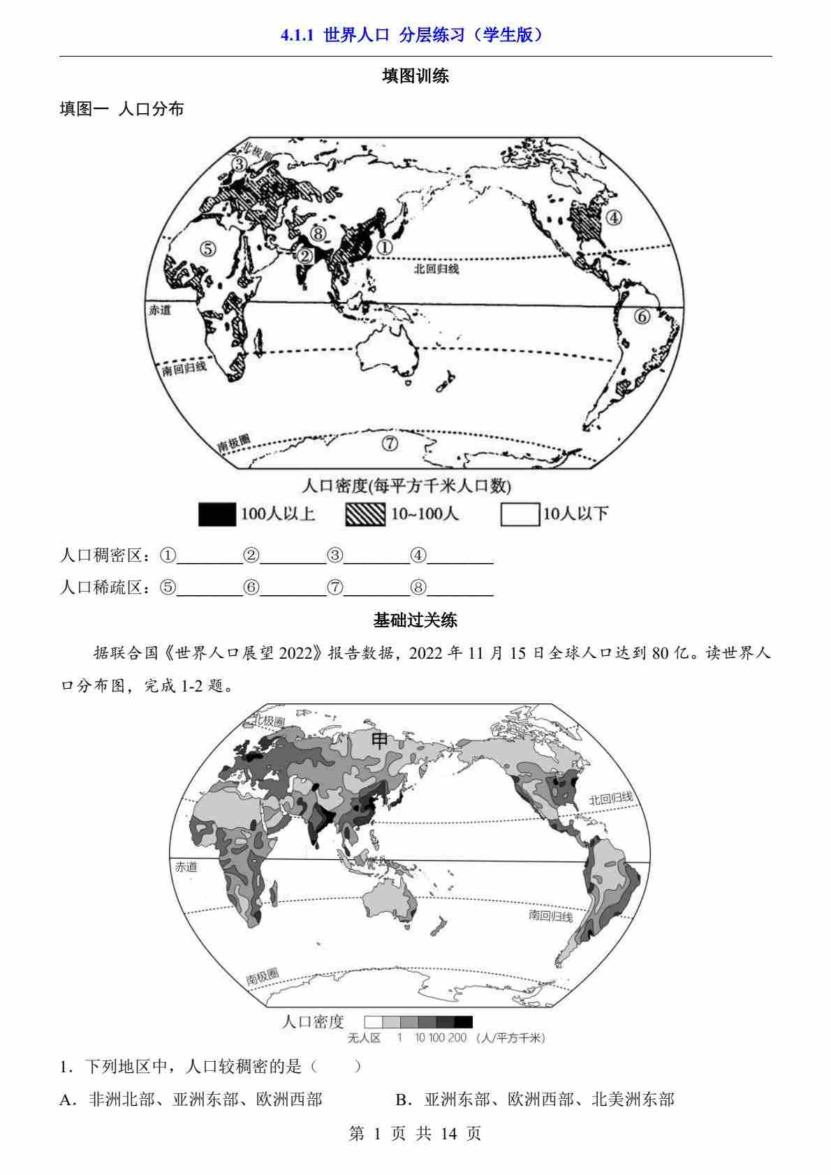 4.1.1 世界人口 分层练习