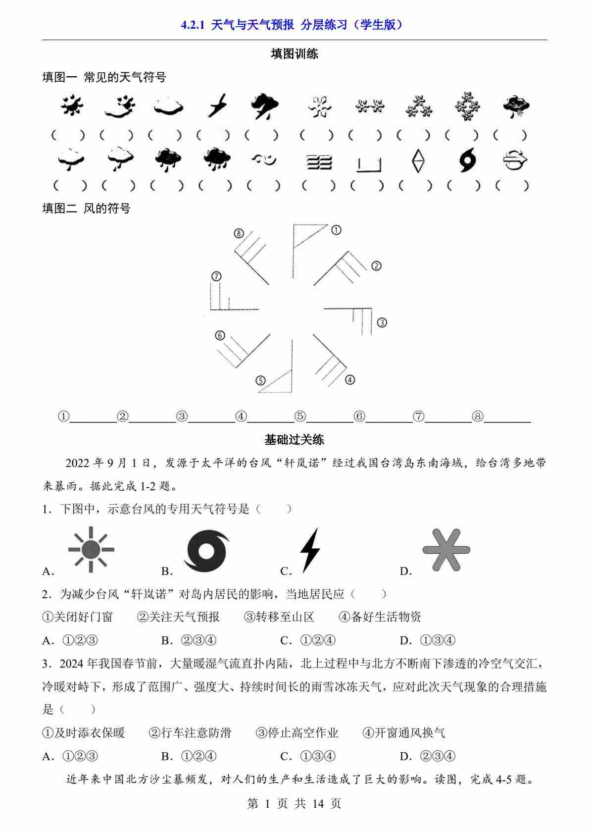 4.2.1 天气与天气预报 分层练习