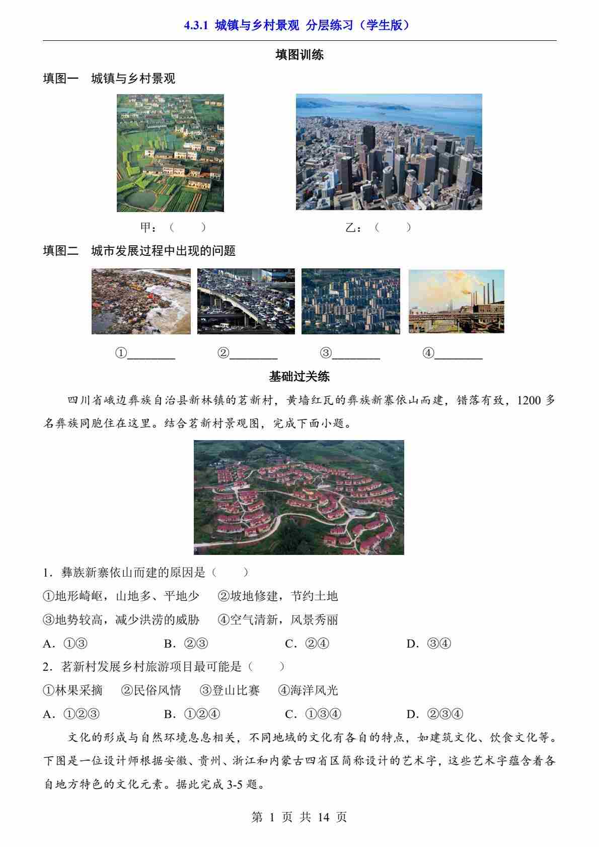 4.3.1 城镇与乡村景观 分层练习