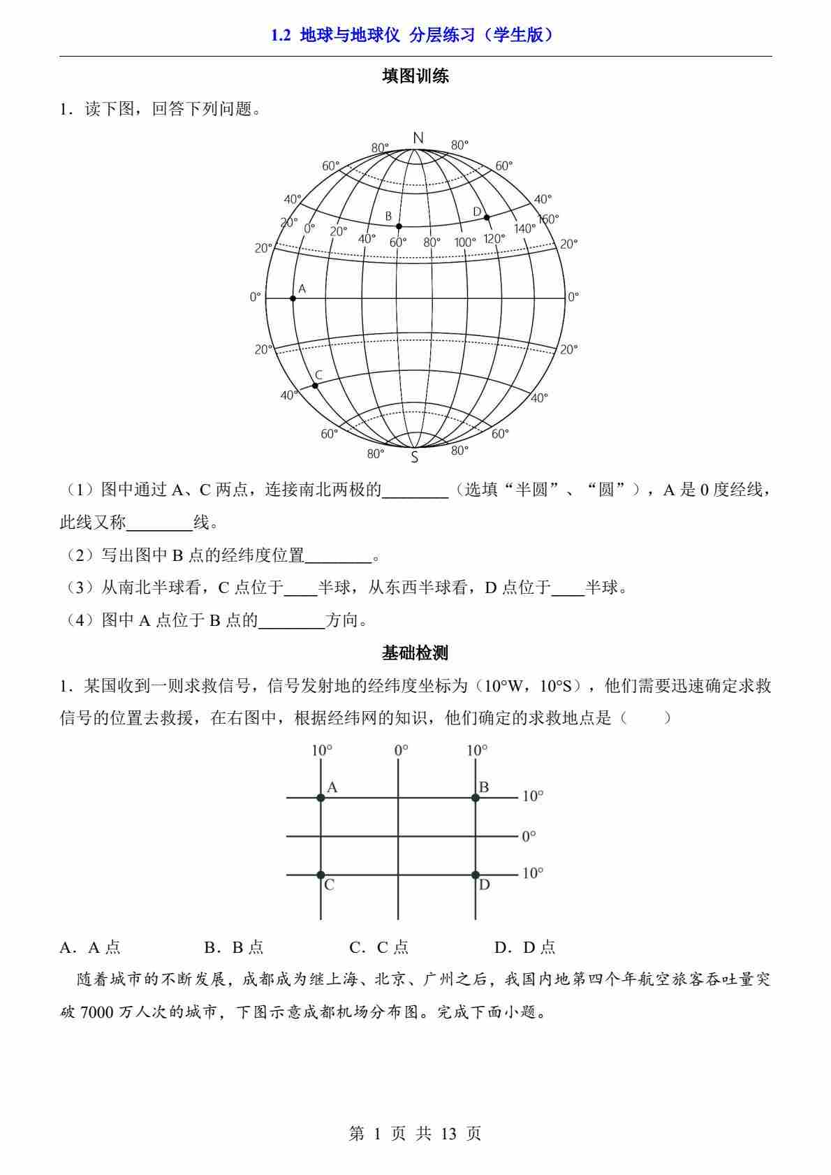 1.2 地球与地球仪(分层练习)