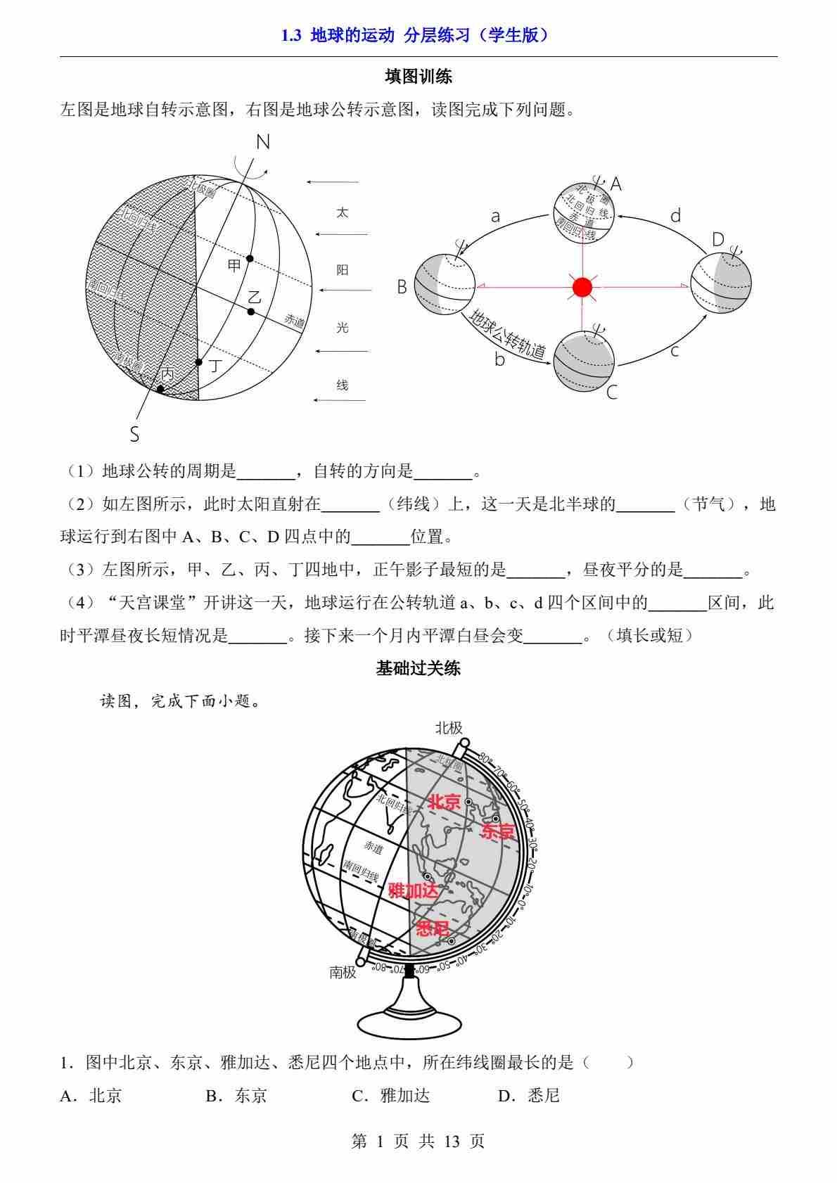 1.3 地球的运动(分层练习)