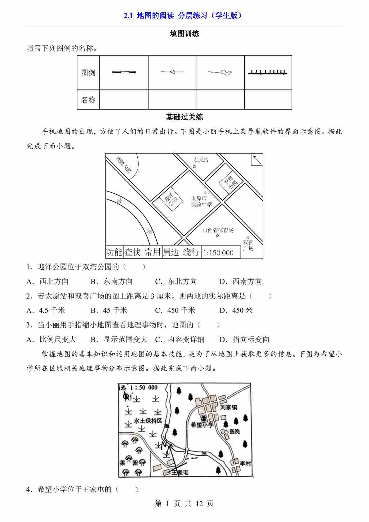 2.1 地图的阅读(分层练习)