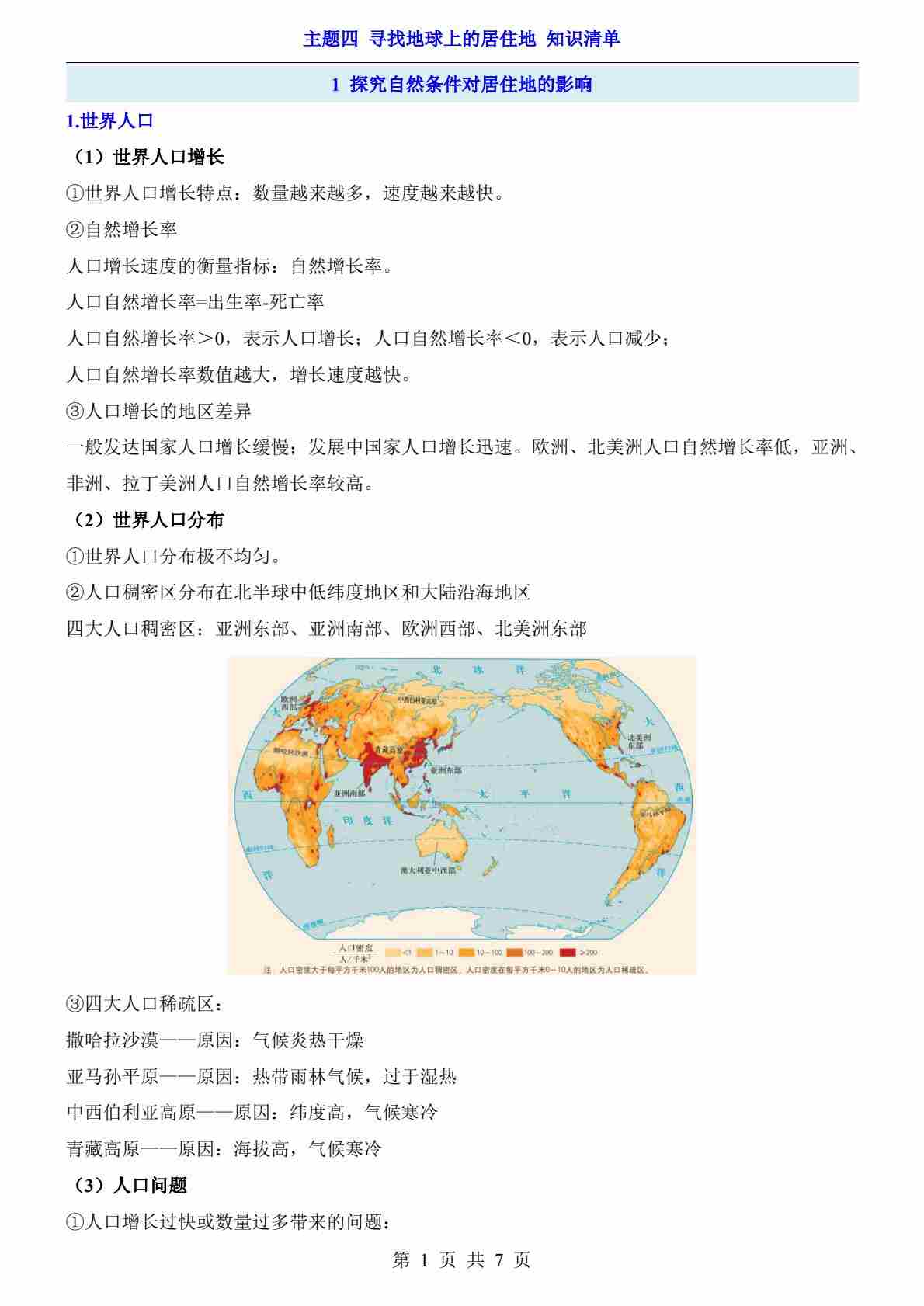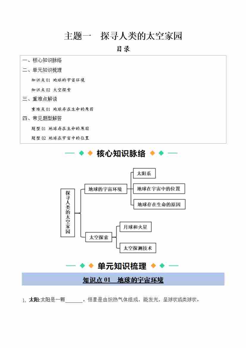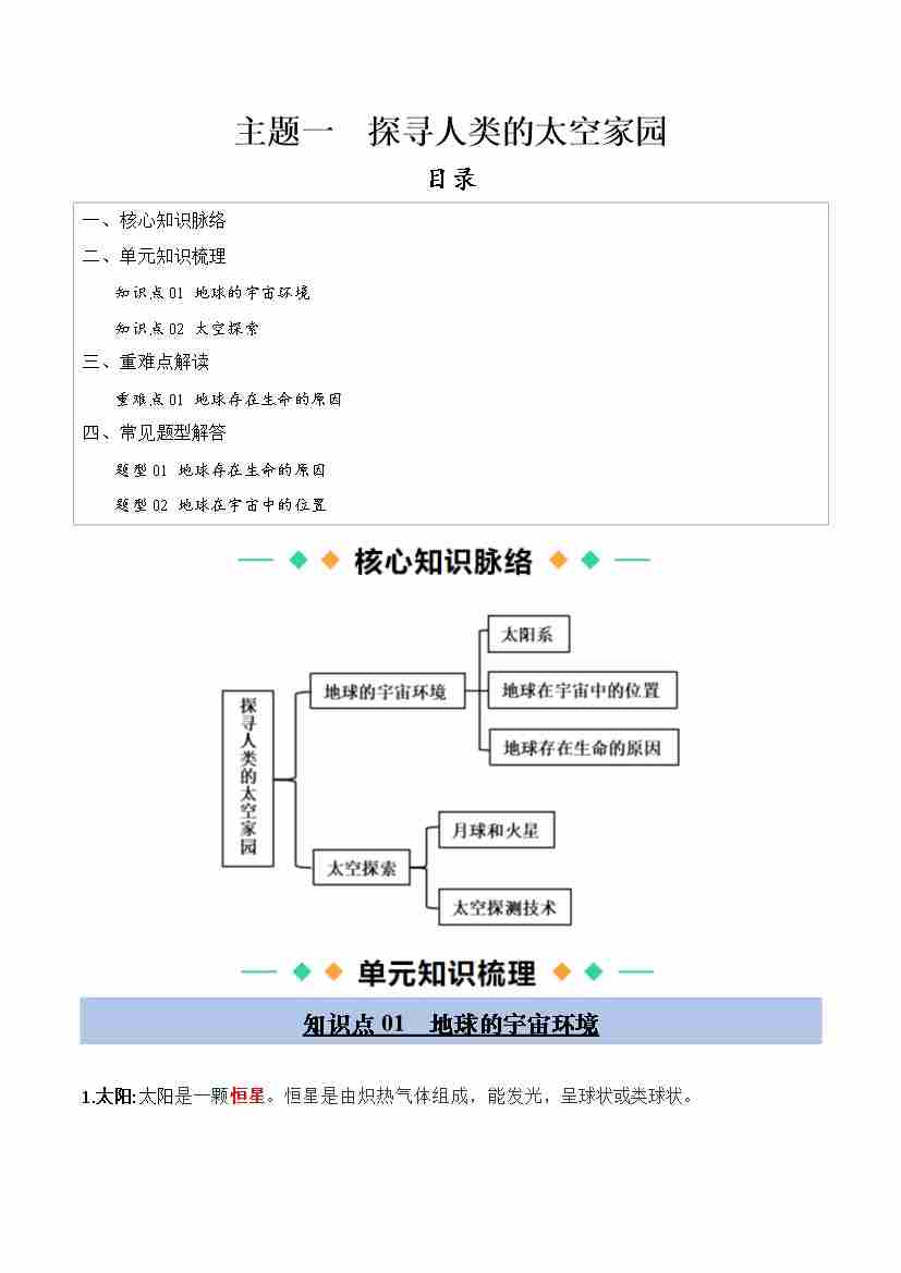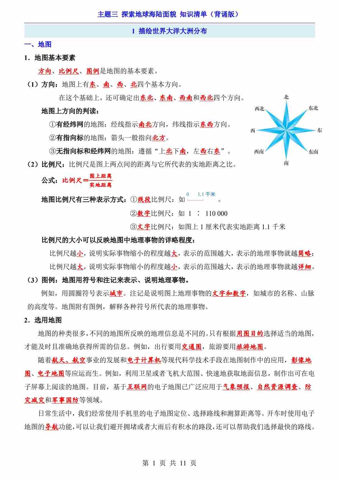 主题3 探索地球海陆面貌(知识清单-背诵版)
