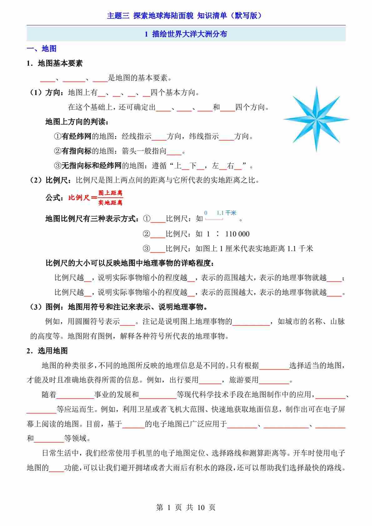 主题3 探索地球海陆面貌(知识清单-默写版)
