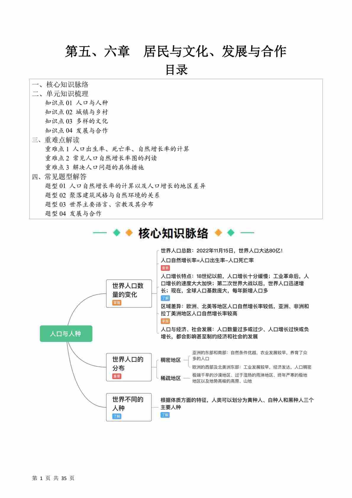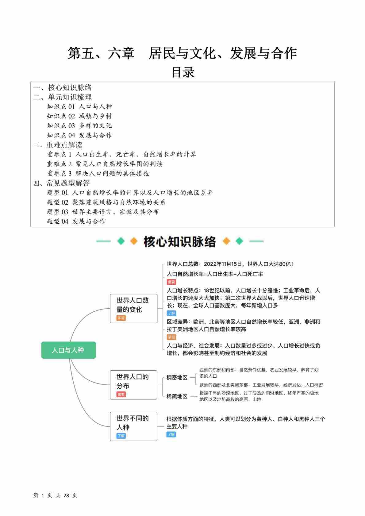 第5、6章 居民与文化、发展与合作 【速记清单】(答案版)