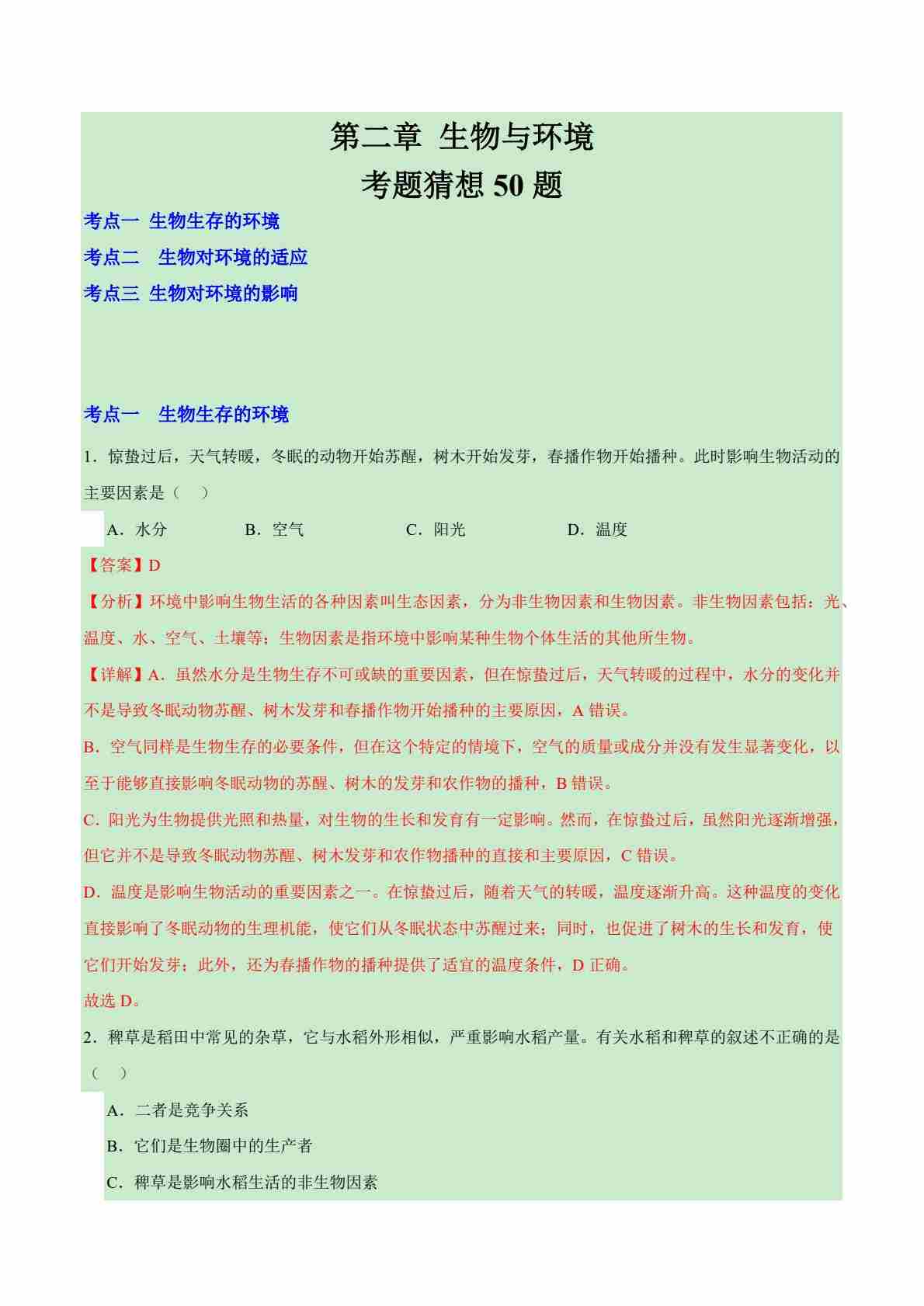 【期中专题训练】第二章 生物与环境(考题猜想50题)(解析版)