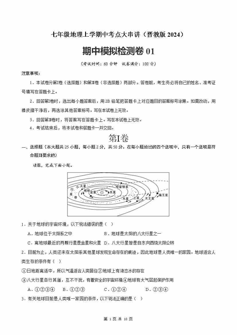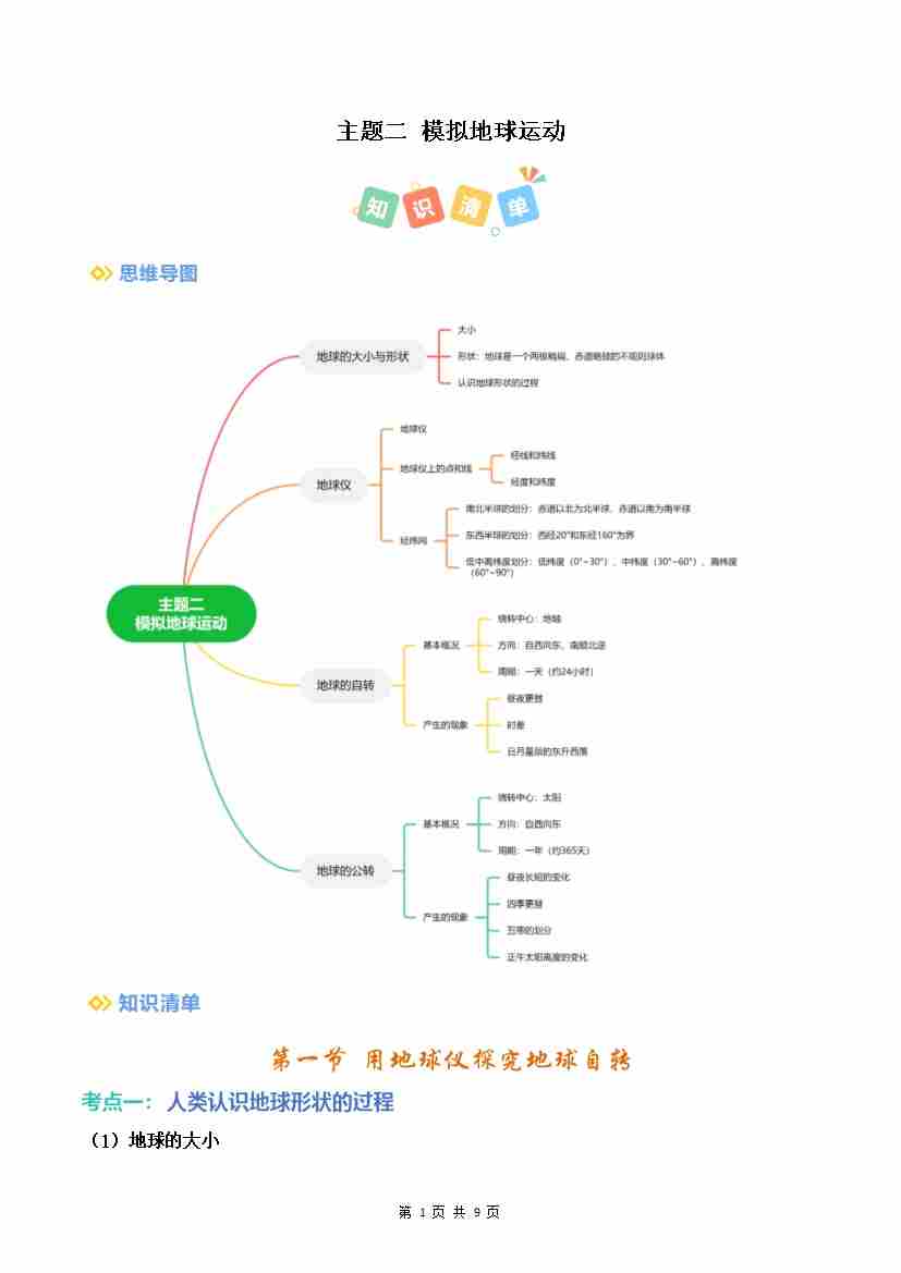 主题1 探寻人类的太空家园(考点清单)(挖空版)