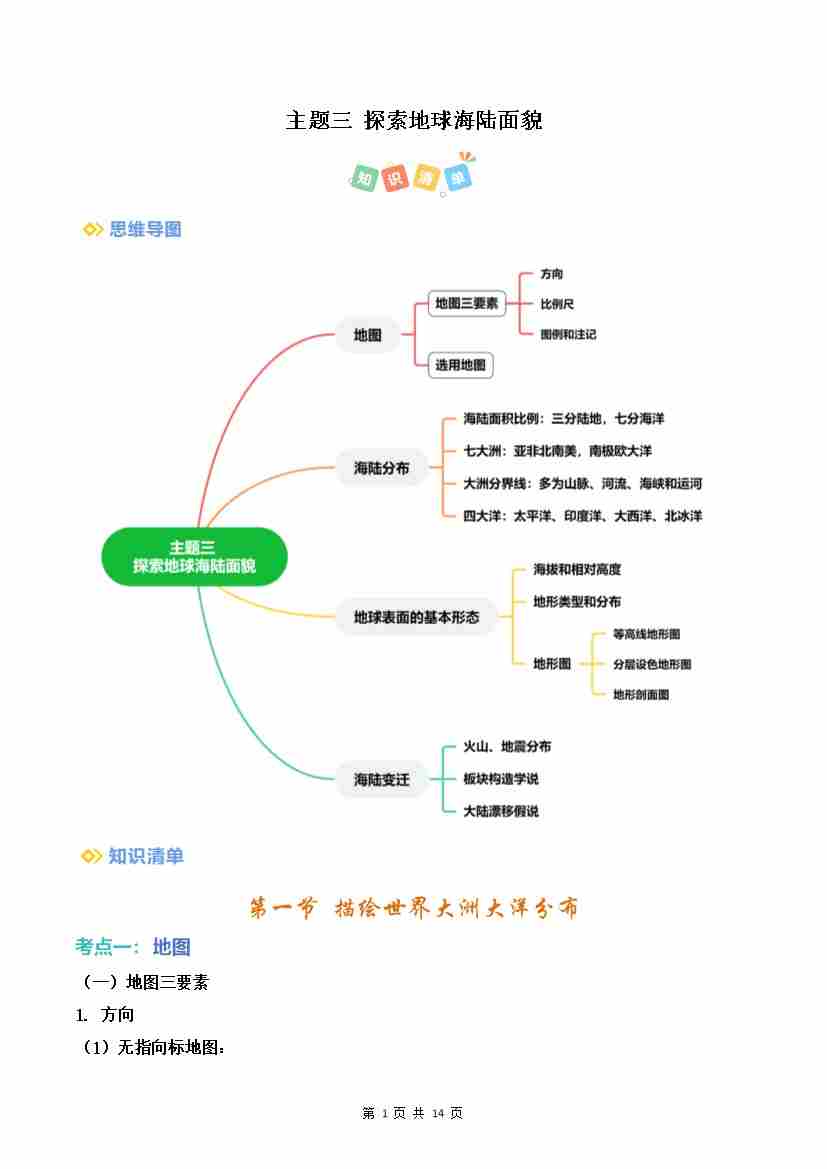 主题3 探索地球海陆面貌(考点清单)(背记版)