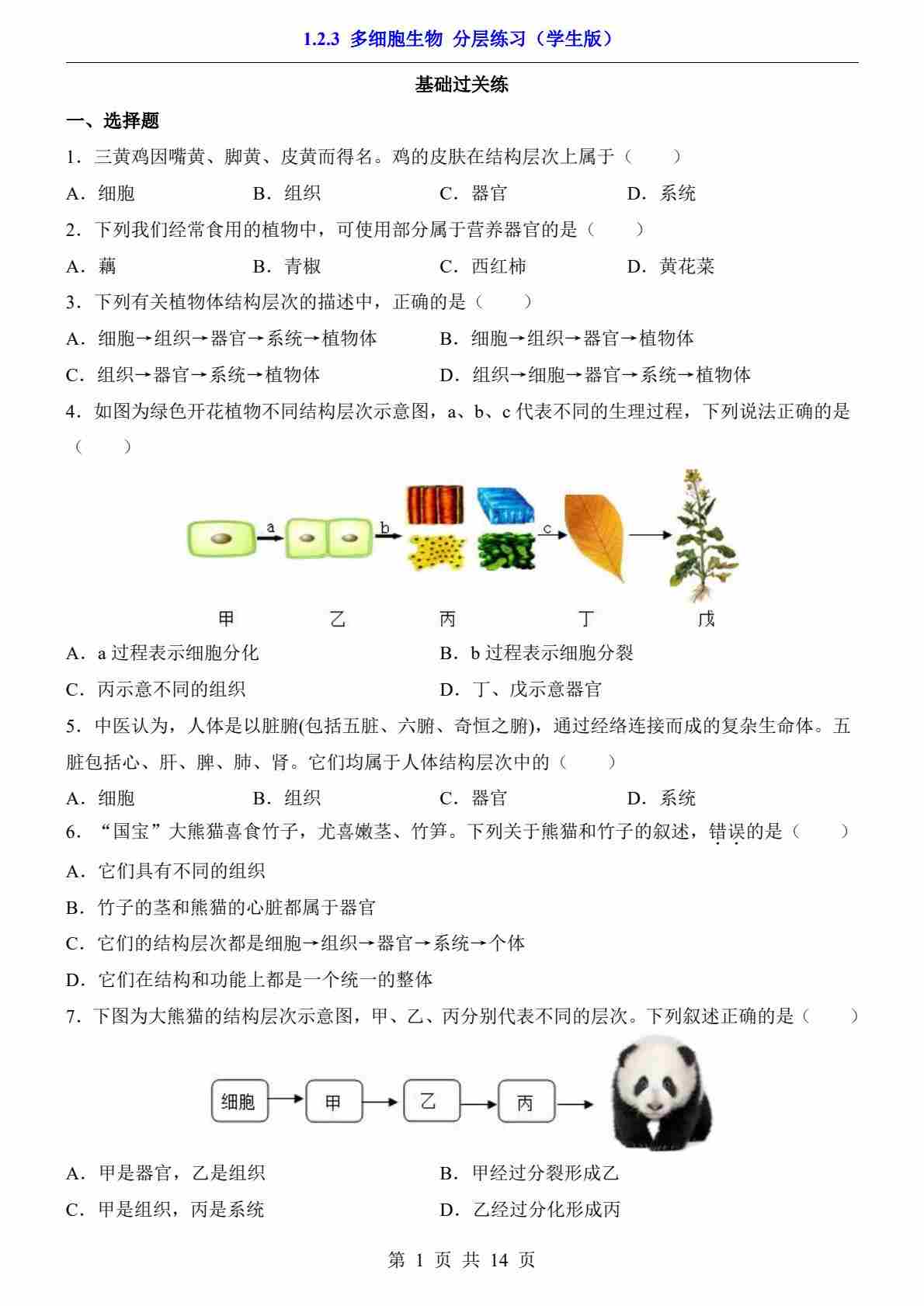 1.2.3 多细胞生物(分层练习)