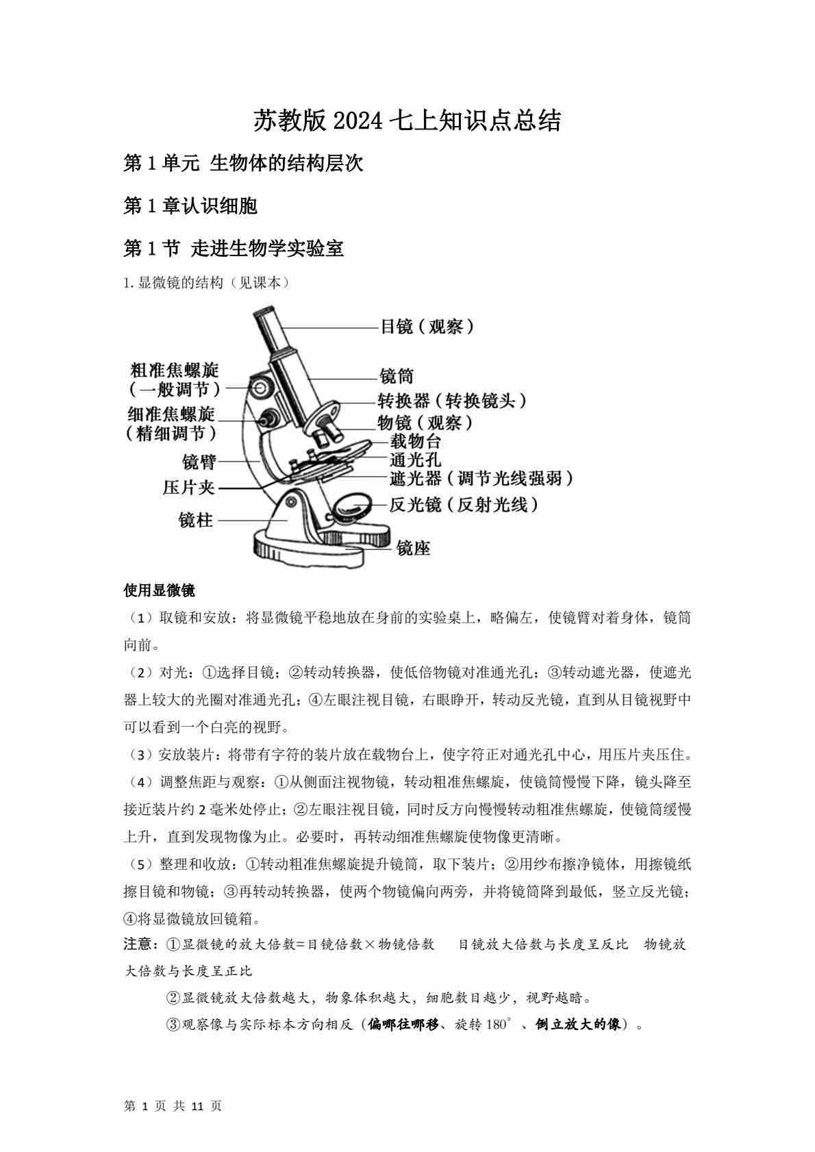 七上生物知识点汇总
