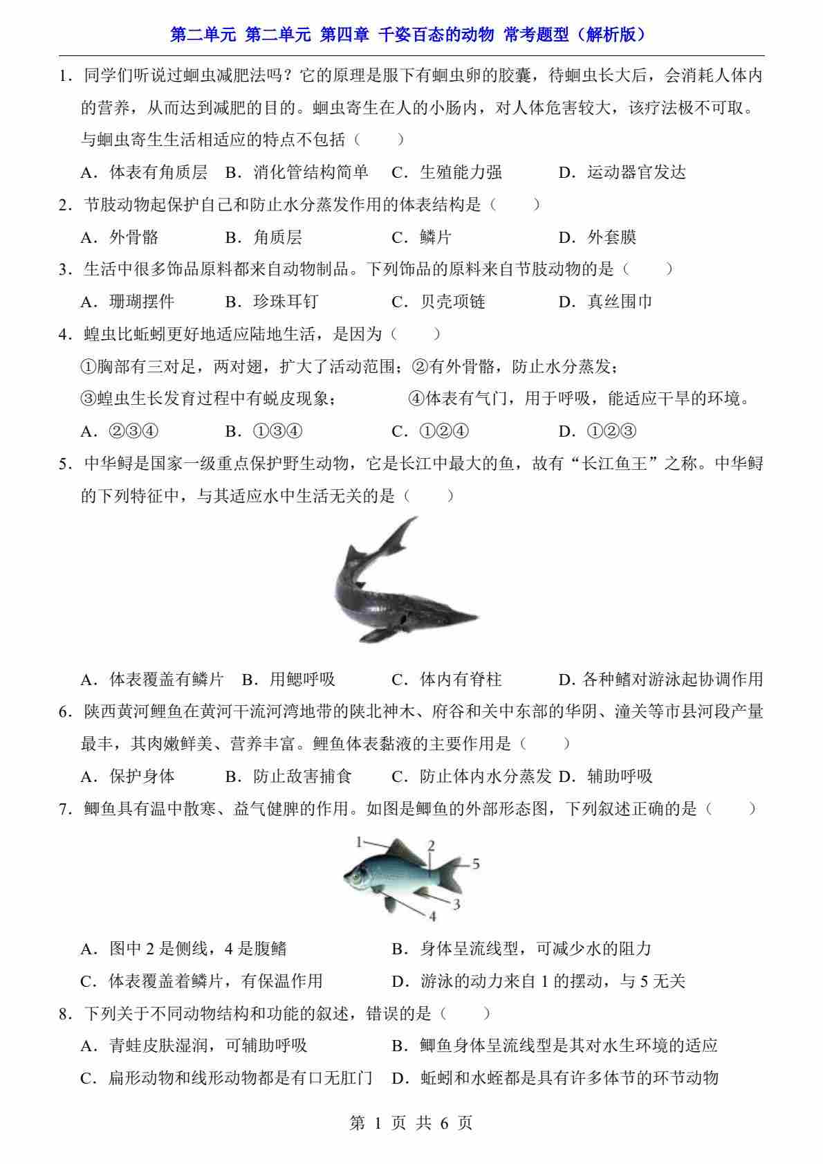 第2单元 第4章 千姿百态的动物(常考题型)