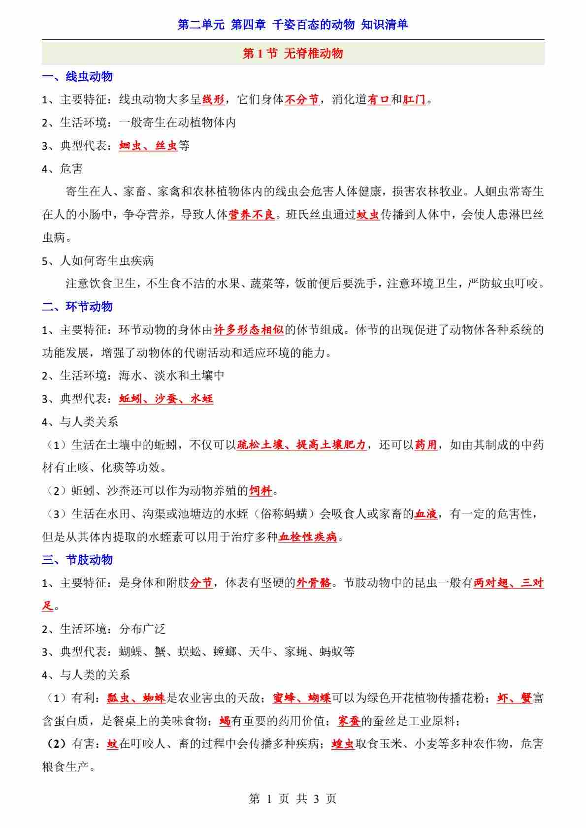 第2单元 第4章 千姿百态的动物(知识清单)