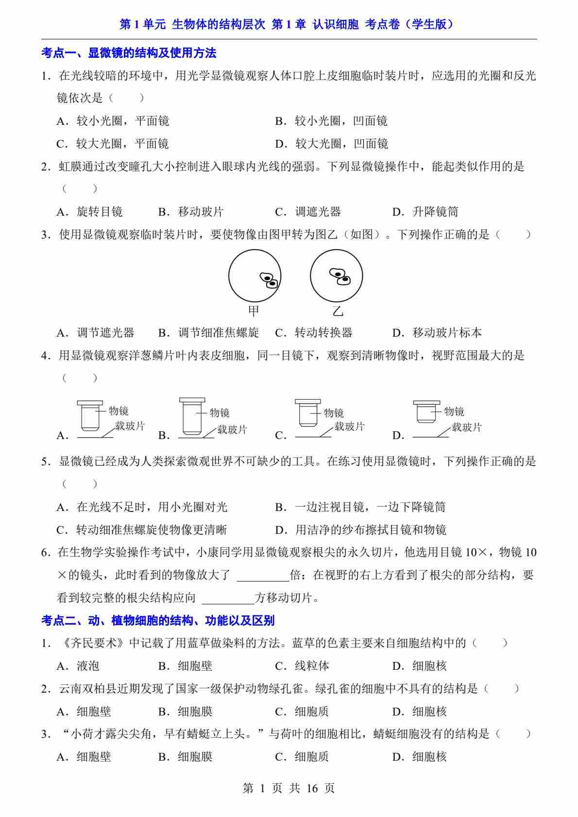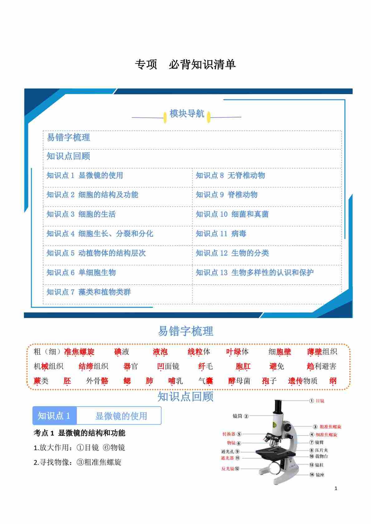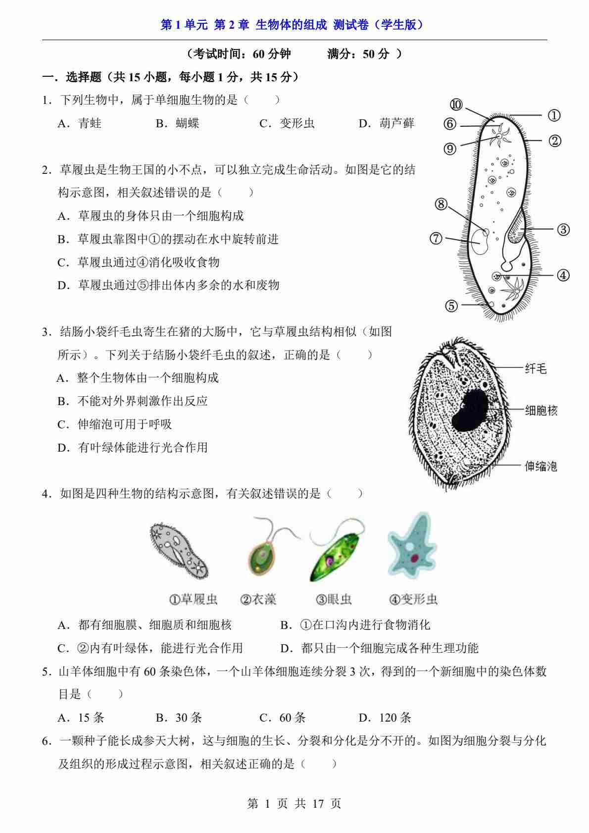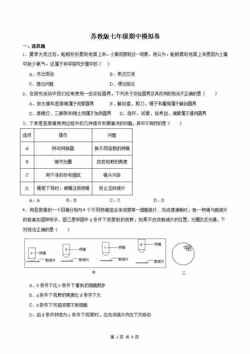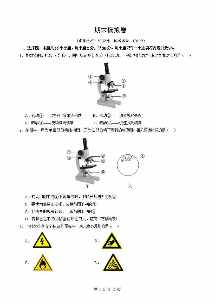 七年级生物期末模拟卷(考试版)【测试范围:七上全册】(苏教版2024)
