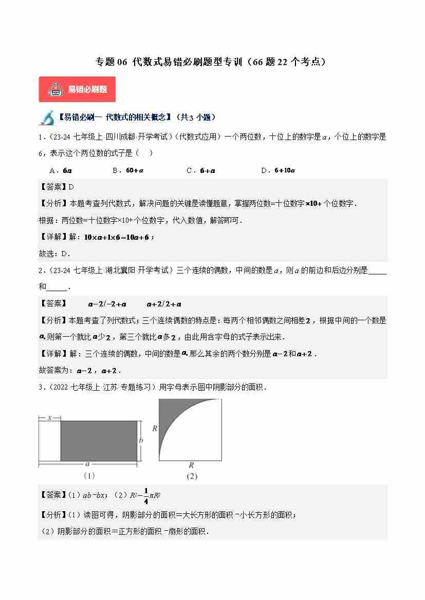 专题06 代数式易错必刷题型专训(66题22个考点)(解析版)