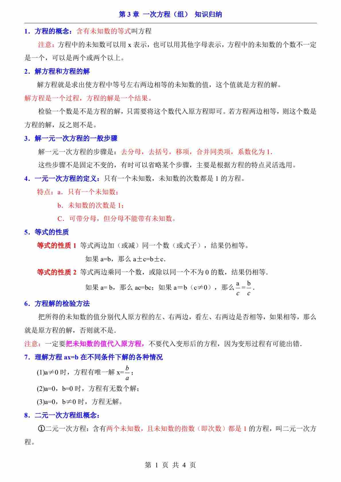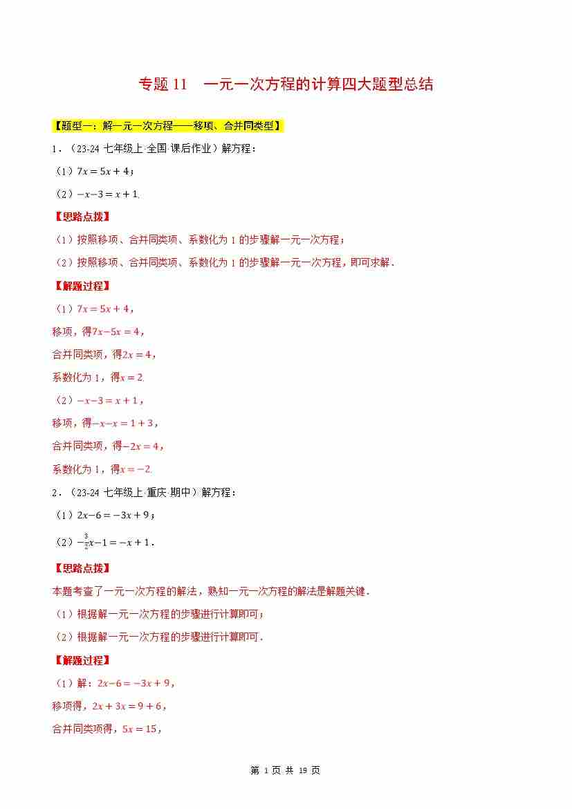 专题11 一元一次方程的计算四大题型总结(计算题专训练)(湘教版2024)(解析版)