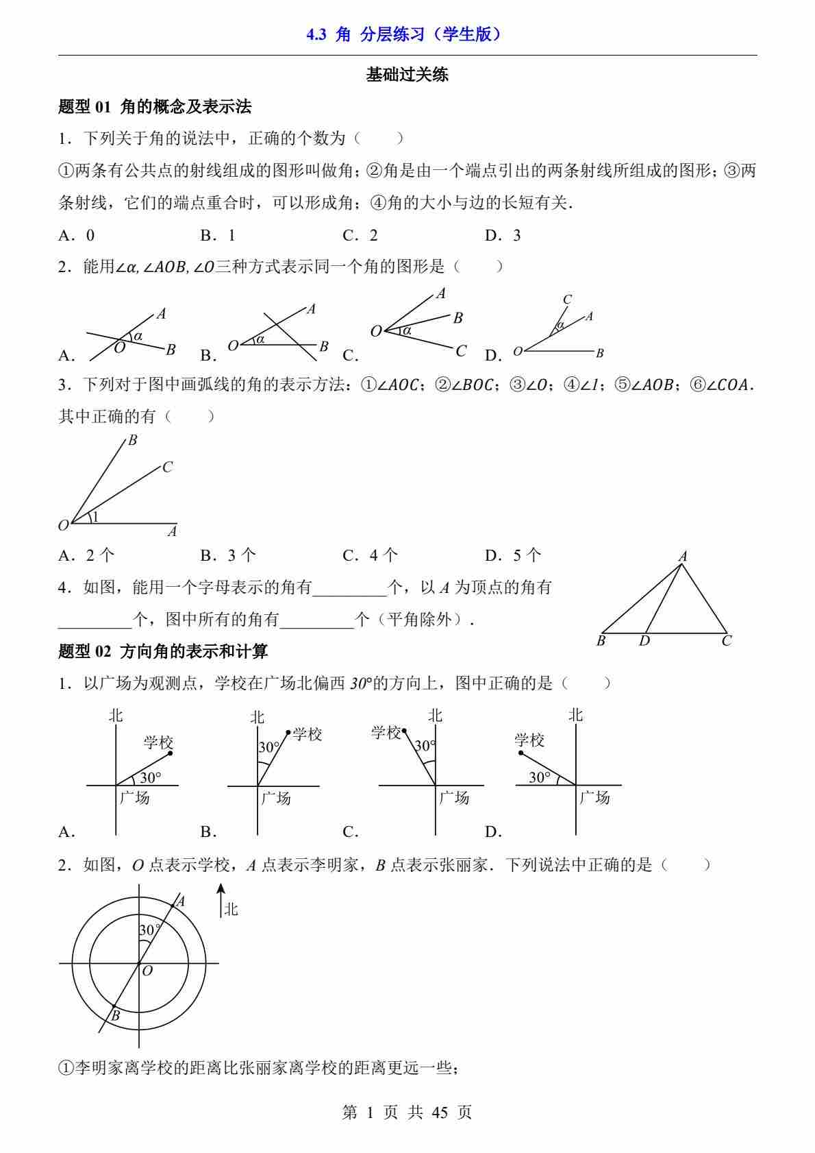 4.3 角(分层练习)