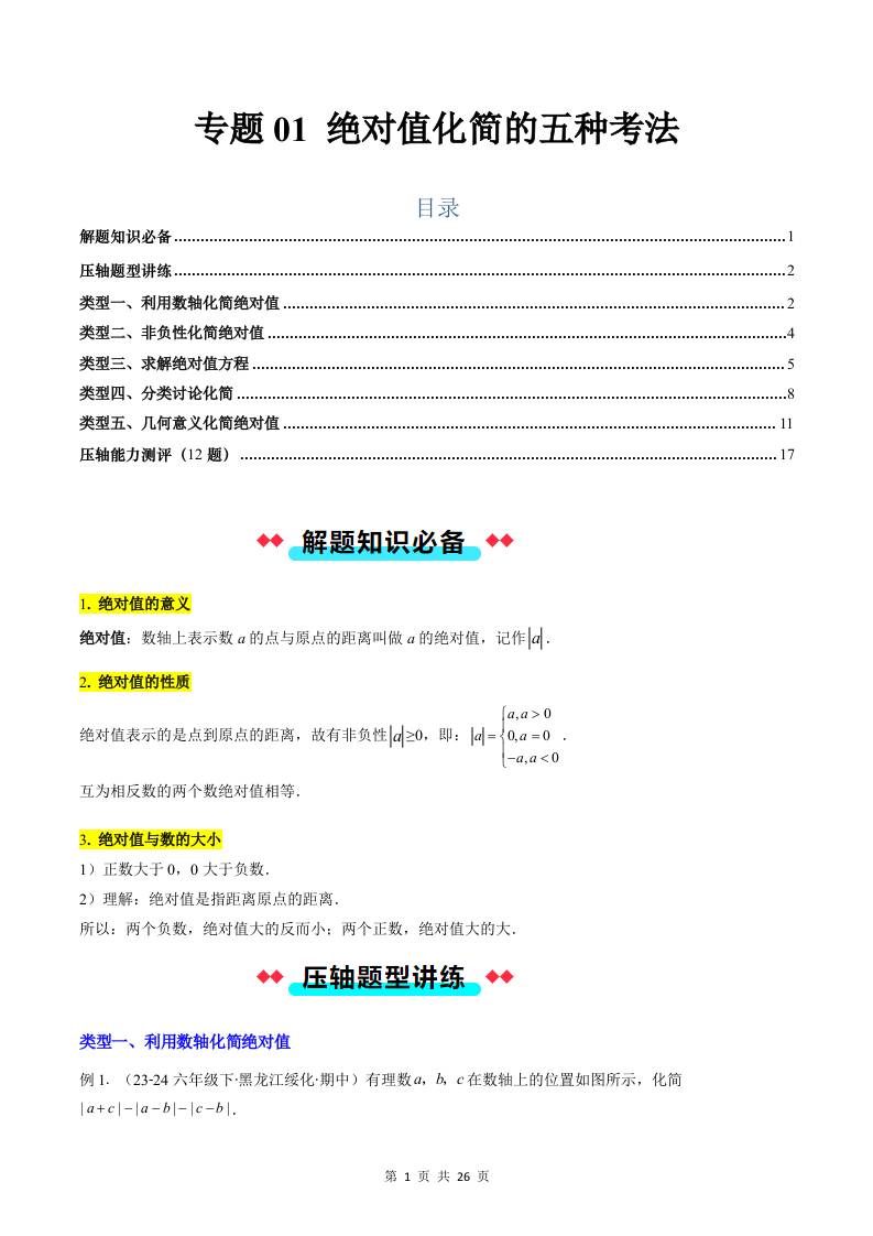 专题01 绝对值化简的五种考法(解析)