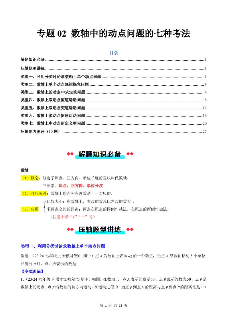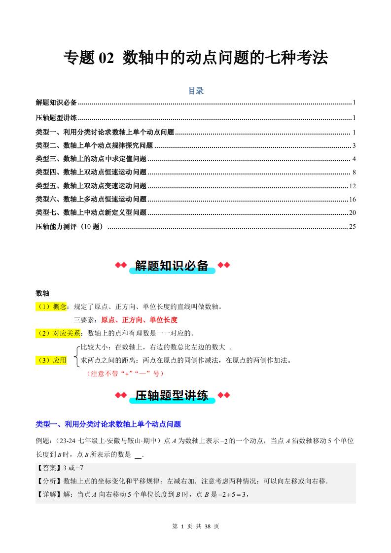 专题02 数轴中的动点问题的七种考法(解析)