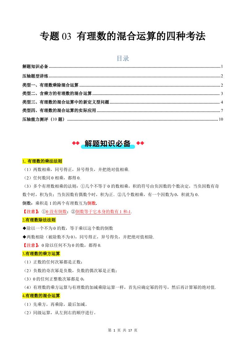 专题03 有理数的混合运算的四种考法(解析)