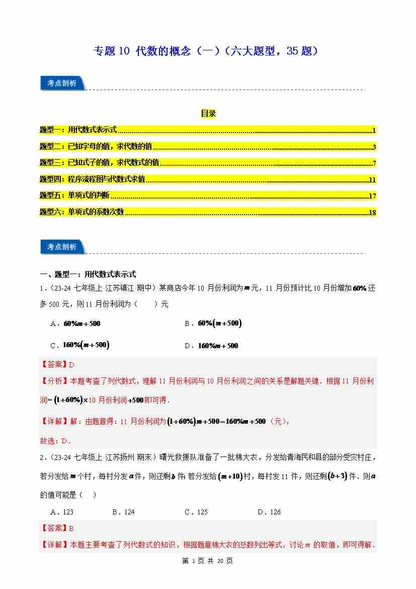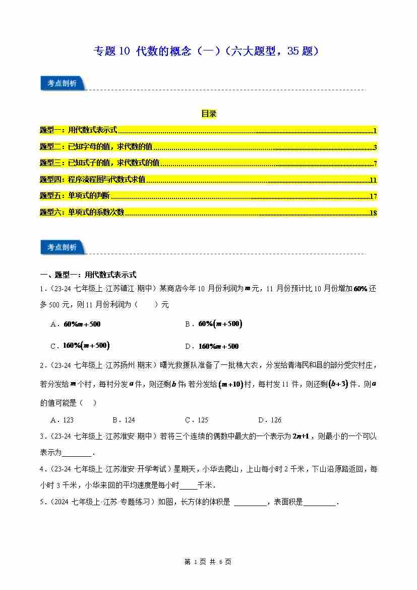 专题10 代数的概念(一)(六大题型,35题)(解析版)