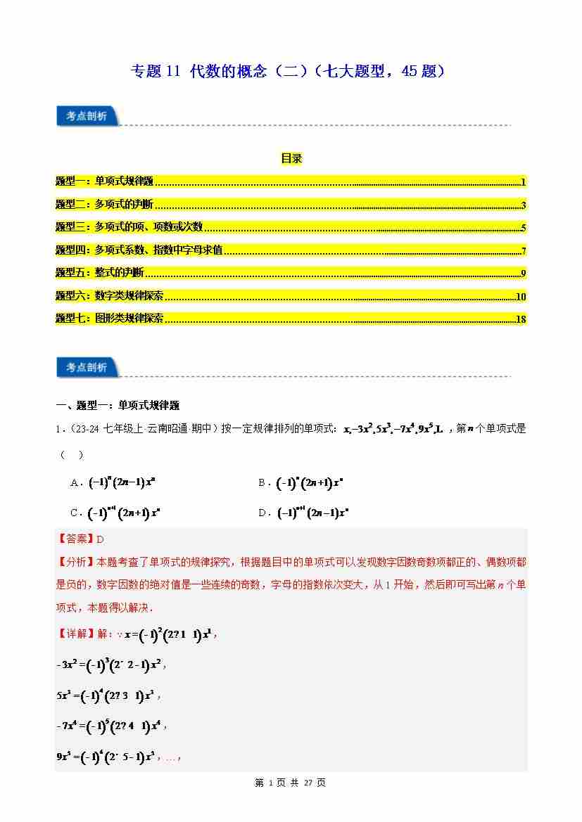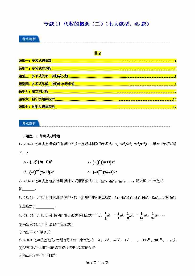 专题11 代数的概念(二)(七大题型,45题)(原卷版)