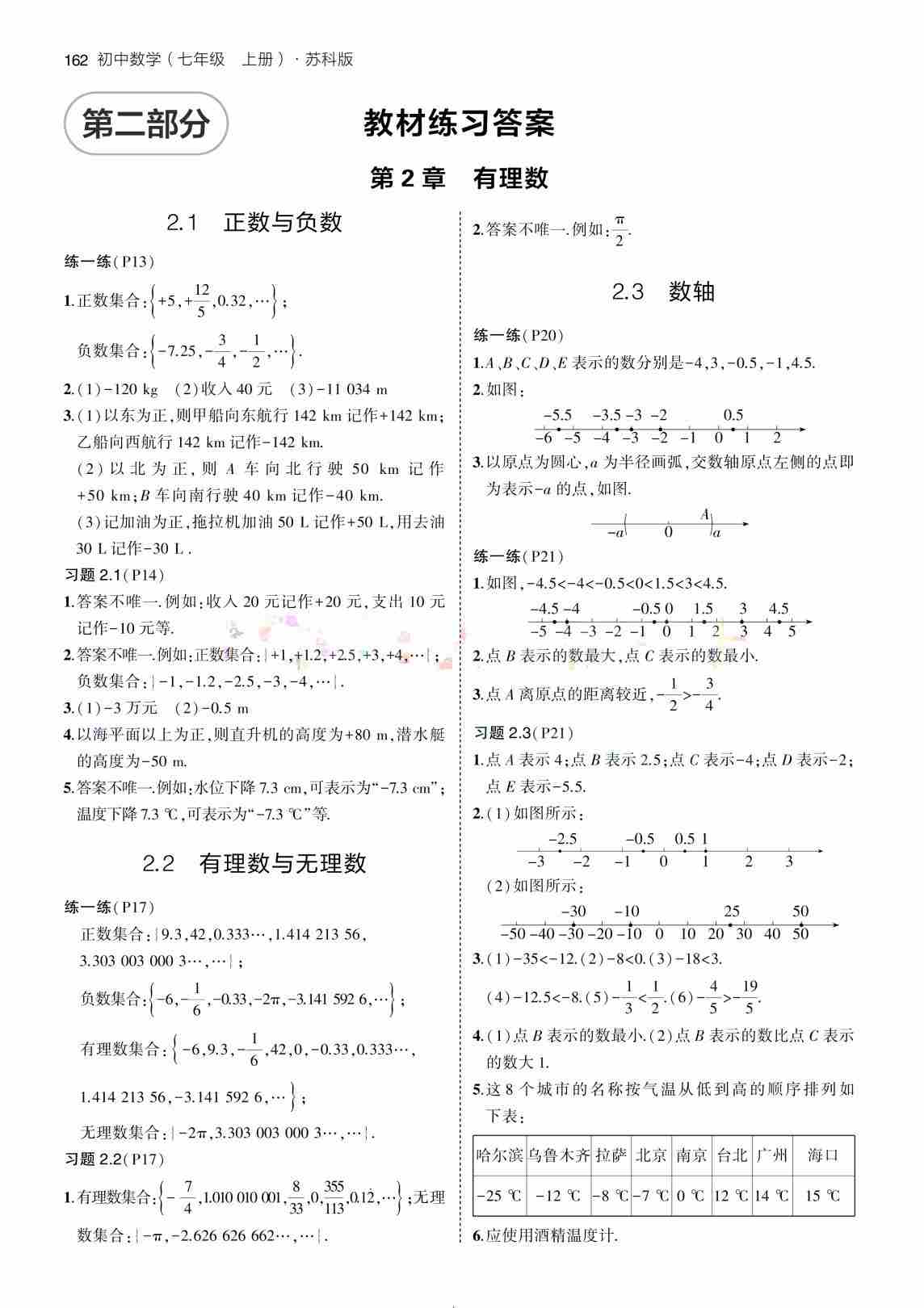 7上初中数学苏科版 教材练习答案(新教材)