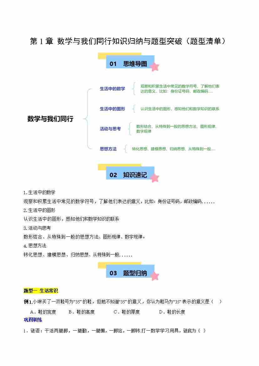 第1章 数学与我们同行知识归纳与题型突破(7类题型清单)(原卷版)