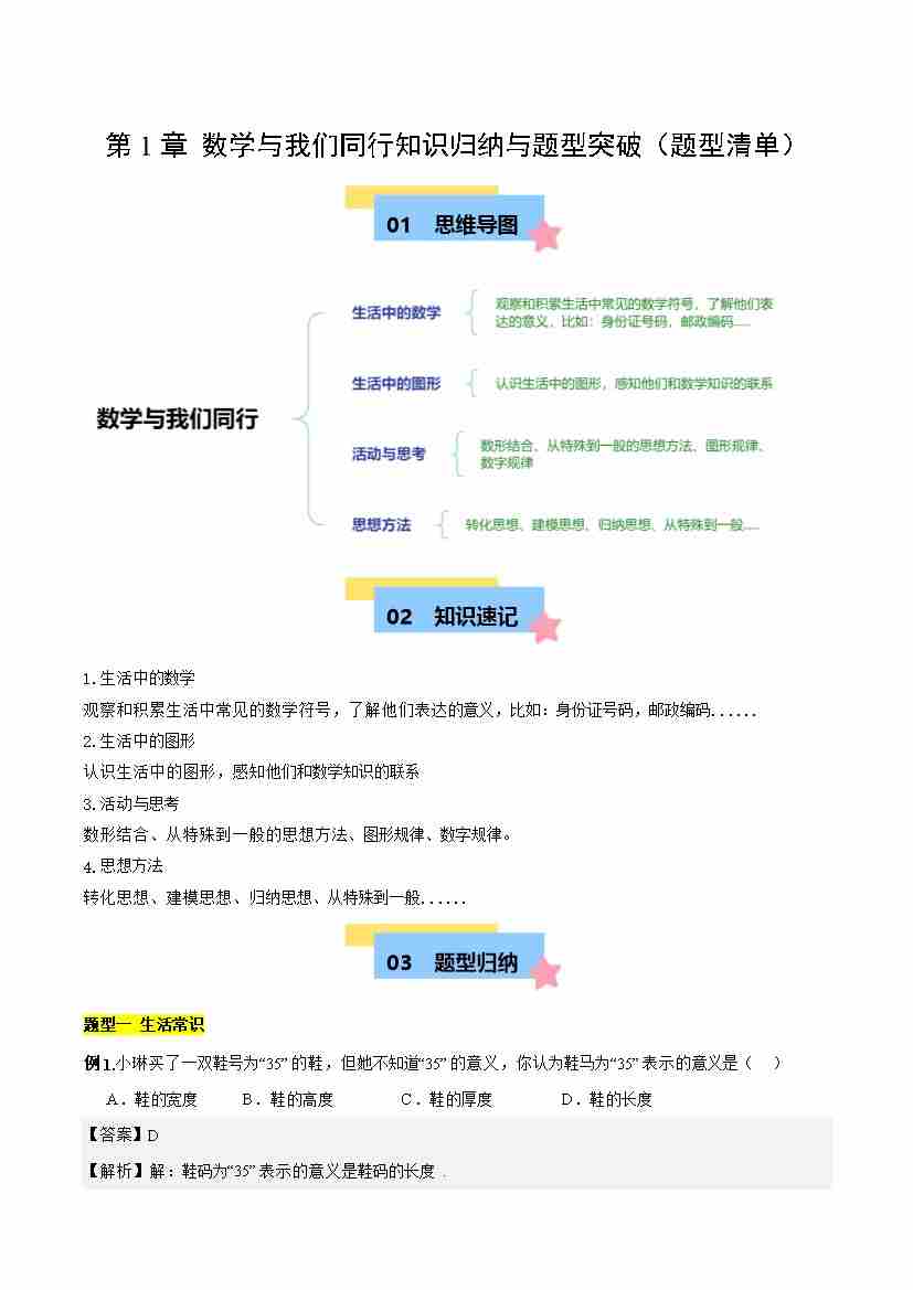 第1章 数学与我们同行知识归纳与题型突破(7类题型清单)(解析版)